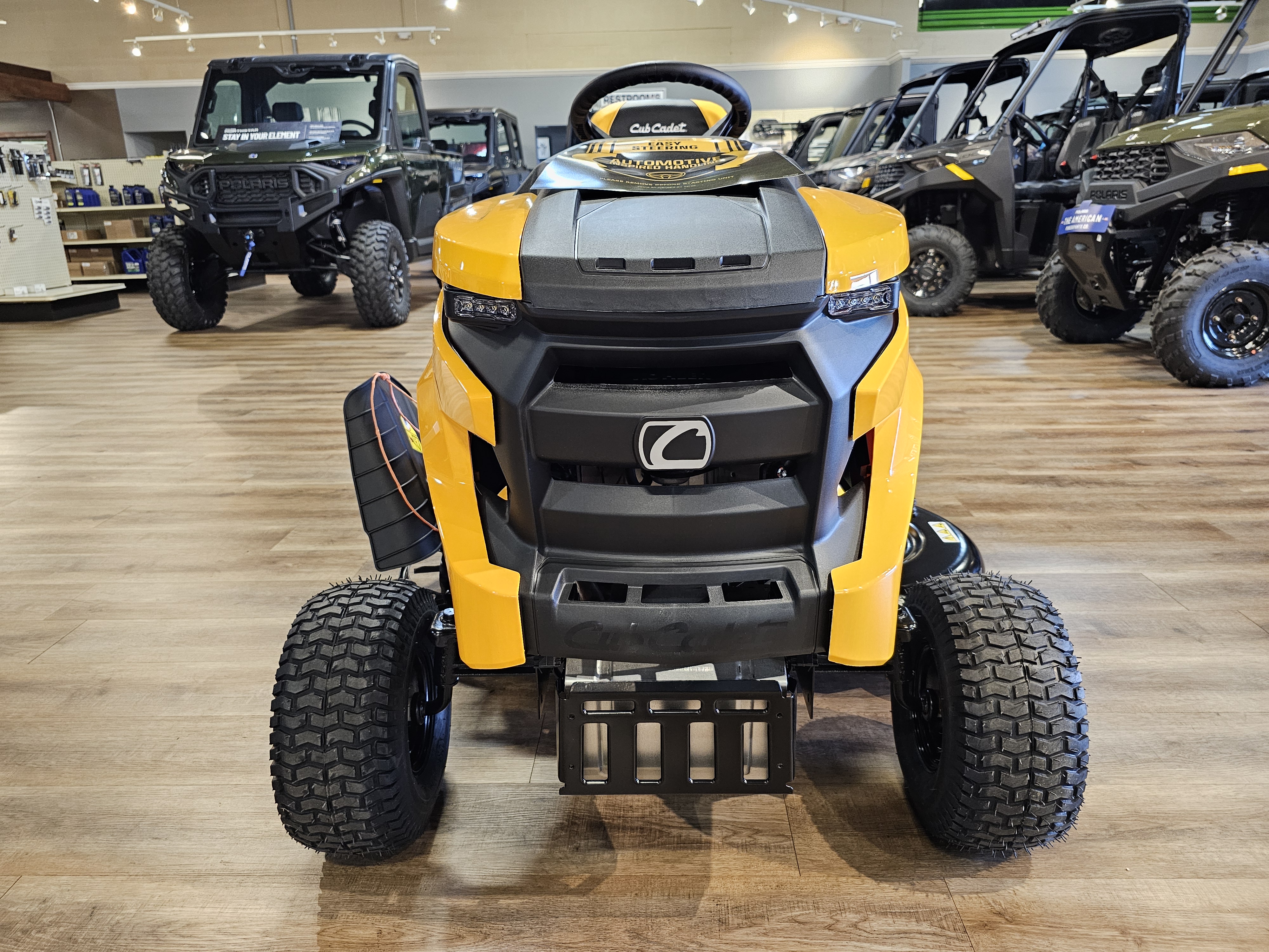 The Cub Cadet® Enduro Series XT1 LT46 is a riding lawn mower with a 46-inch stamped deck and a powerful 22 HP engine. It has a hydrostatic transmission that ensures smooth operation. The mower also comes with a comfortable 15-inch high back seat that can be adjusted, making your mowing experience even better.