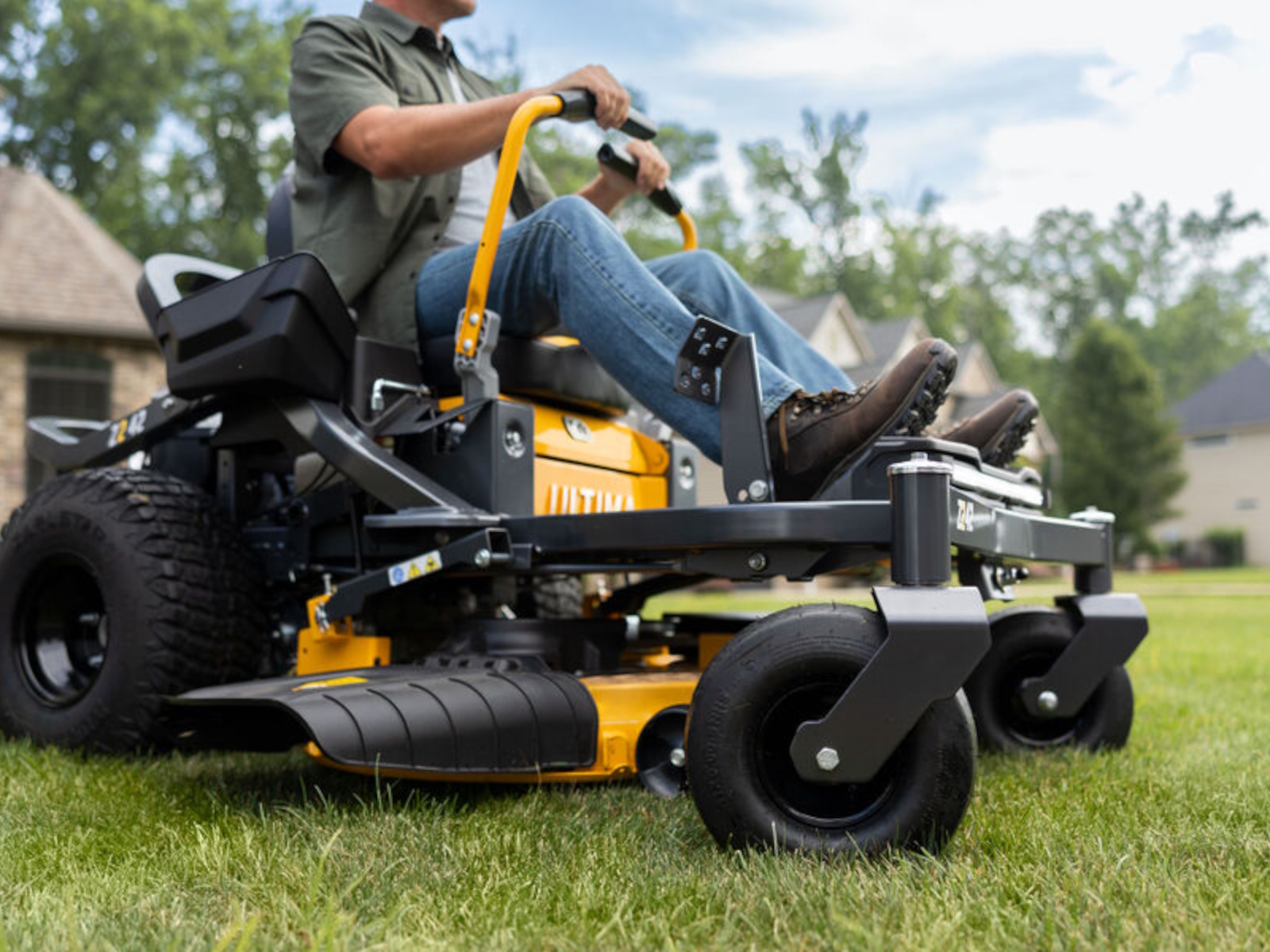 Comfortably control your zero-turn with overmolded rubber hand grips designed to minimize vibration.