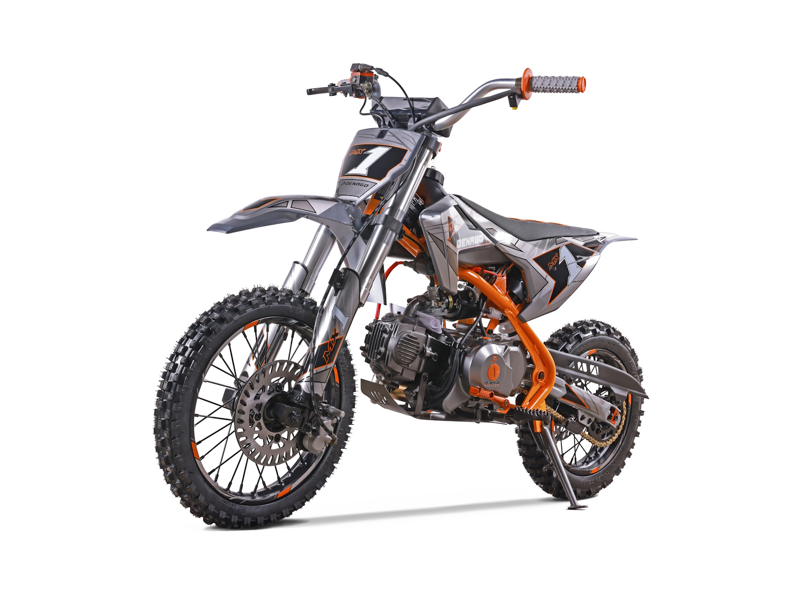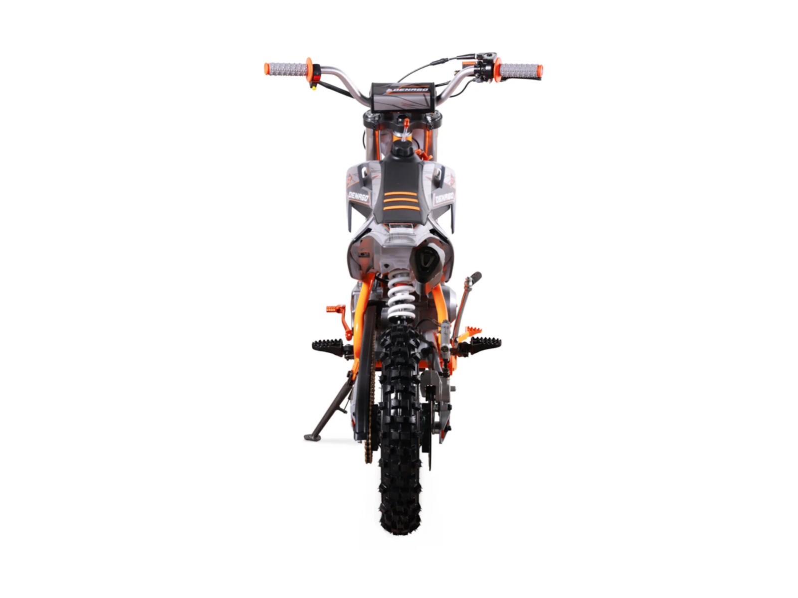 The MX1 is one of Denago’s best-sellers thanks to its auto-clutch and electric starter that simplifies learning how to ride, yet it has a foot-shifting 4-speed transmission that teaches riders how to choose optimal gears for a variety of riding conditions and expand the bike’s performance envelope. An adjustable throttle limiter can dial back power while junior riders are learning or kept unrestricted to unleash full power from its 107cc overhead-cam engine that’s larger and stronger than its competitors.