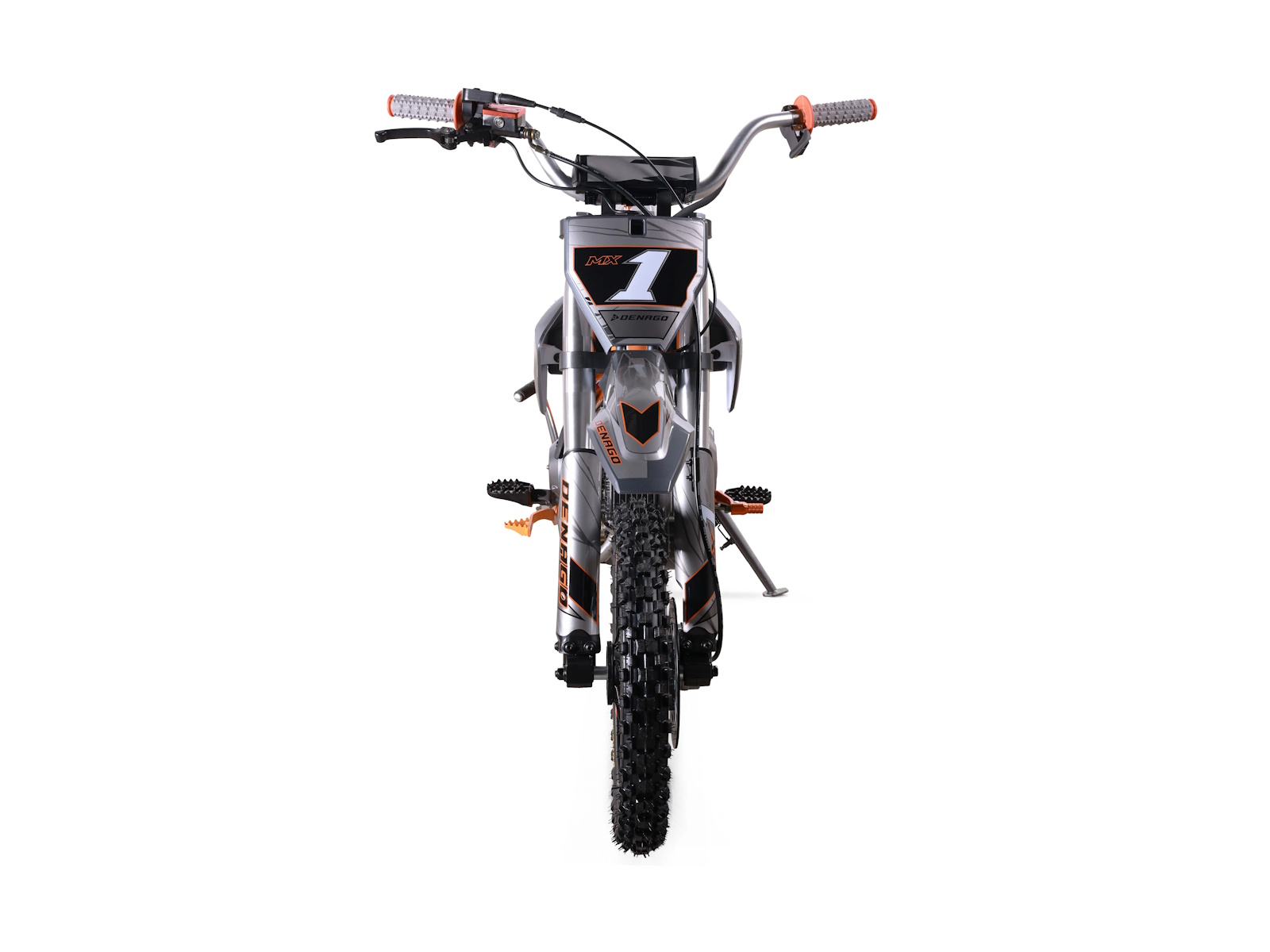 Denago engineered a variety of adjustments for the MX1 that enable riders of all sizes to feel comfortable on our most popular dirtbike. Handlebar clamps are adjustable for a custom fit, the span from the front brake lever to the throttle grip can be set to suit hands large and small, and the rear monoshock and inverted fork are adjustable for spring-preload and damping to suit riders of various sizes and weights.