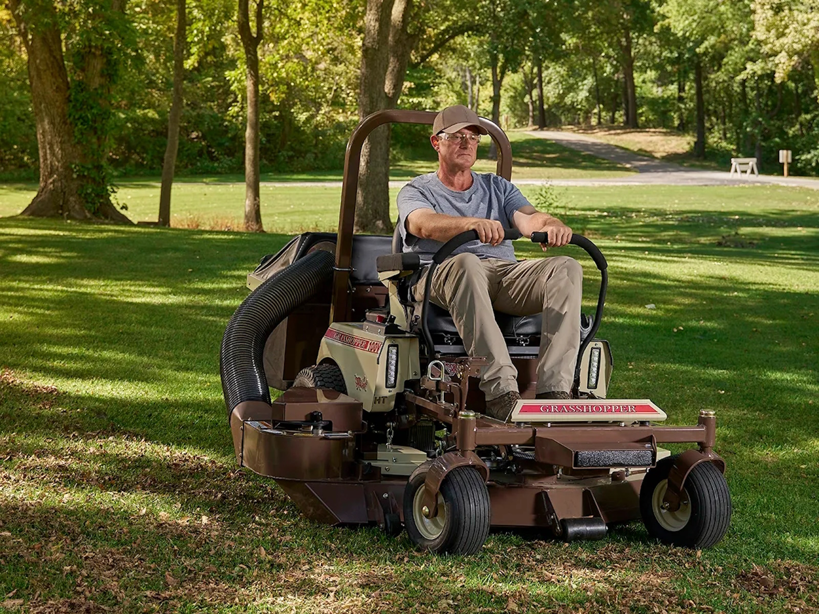 - The Grasshopper Ultimate Operator Station™ is centered around a deep-cushioned seat featuring coil-spring suspension and padded lumbar support. The seat is iso-mounted to reduce vibration and covered in cool, comfortable Cordura® fabric that won't tear or crack with extended use.