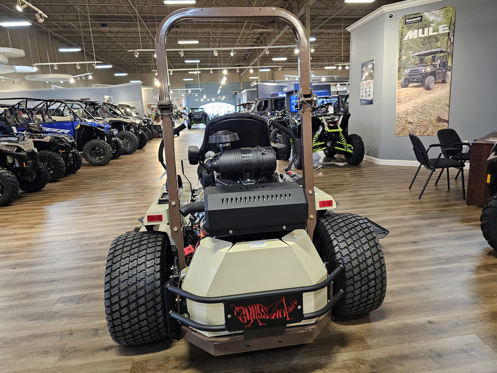 - The Grasshopper Ultimate Operator Station™ is centered around a deep-cushioned seat featuring coil-spring suspension and padded lumbar support. The seat is iso-mounted to reduce vibration and covered in cool, comfortable Cordura® fabric that won't tear or crack with extended use.