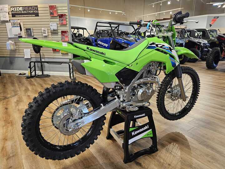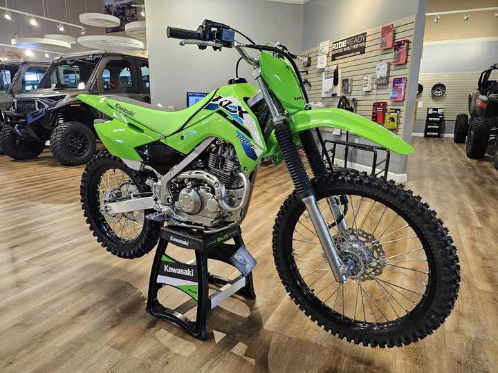Featuring confident handling, KLX®140R motorcycles are the ideal entry into off-road riding. The easy-to-ride KLX140R lineup offers a 144cc engine, plush suspension, and push button electric start, making for great trailblazers.