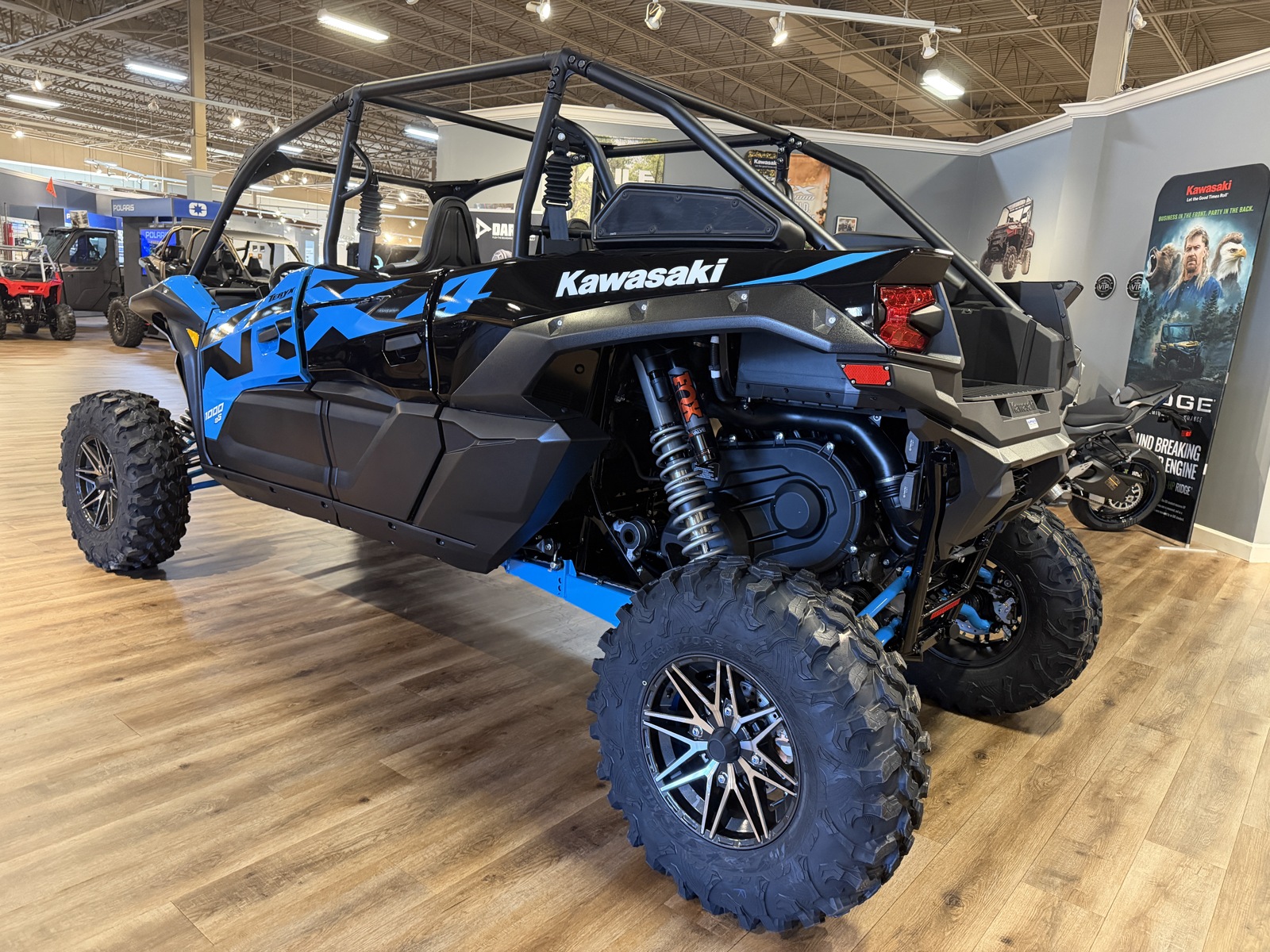 Dominate Adventure with more friends and family with 4-passenger seating on the new Teryx® KRX4™ 1000. With an enlarged chassis, no sacrifices were made to accommodate the additional passengers. Advanced suspension technology combined with beefy wheels and tires deliver the ultimate riding experience. The Teryx KRX4 1000 reinforces and elevates the reputation of purpose-built Kawasaki sport side x sides.