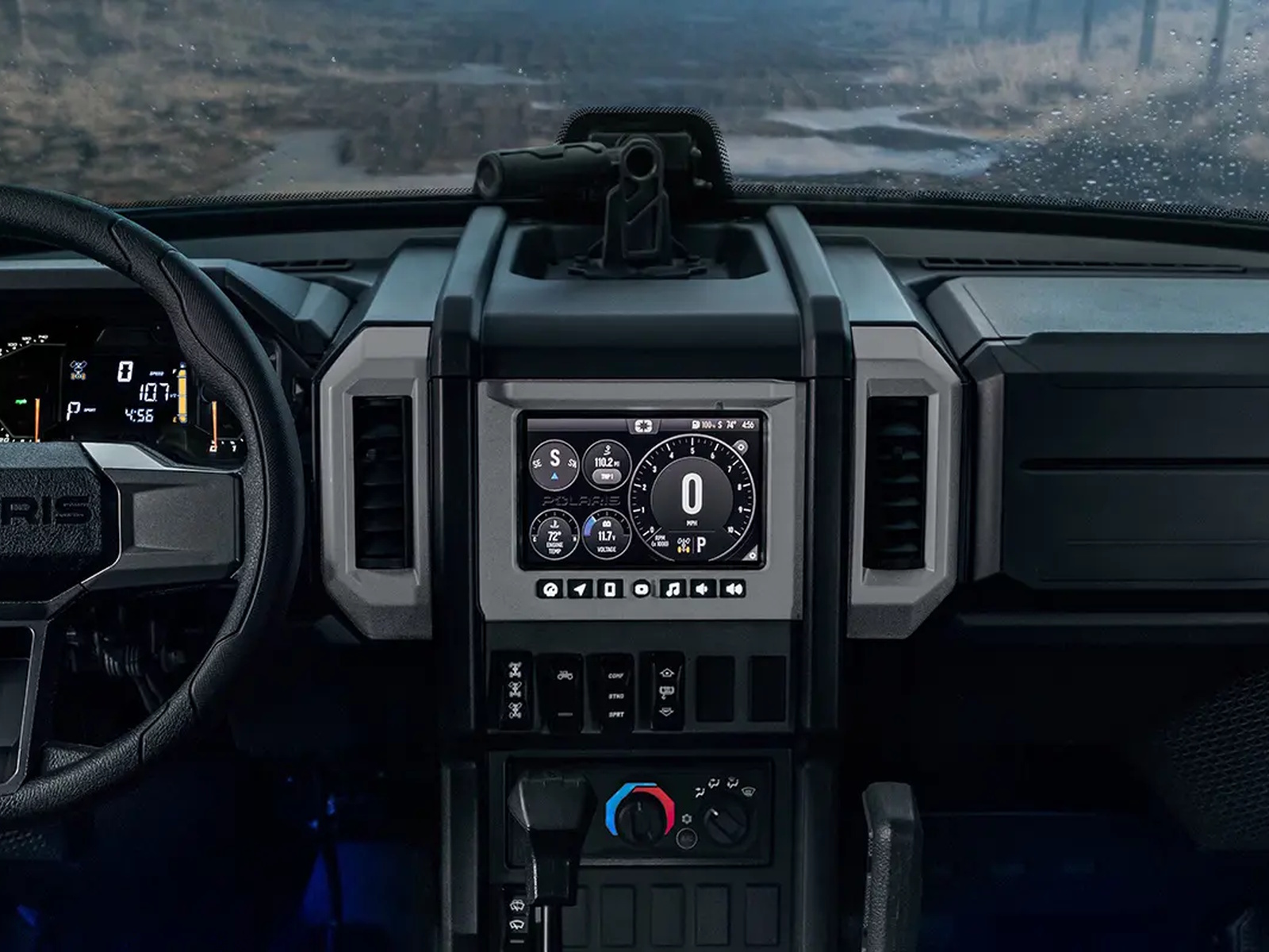 With available locking doors and center console, tilt and telescoping steering wheel, and adjustable bucket seats the Polaris XPEDITION cab allows for a tailored fit for yourself and your gear.