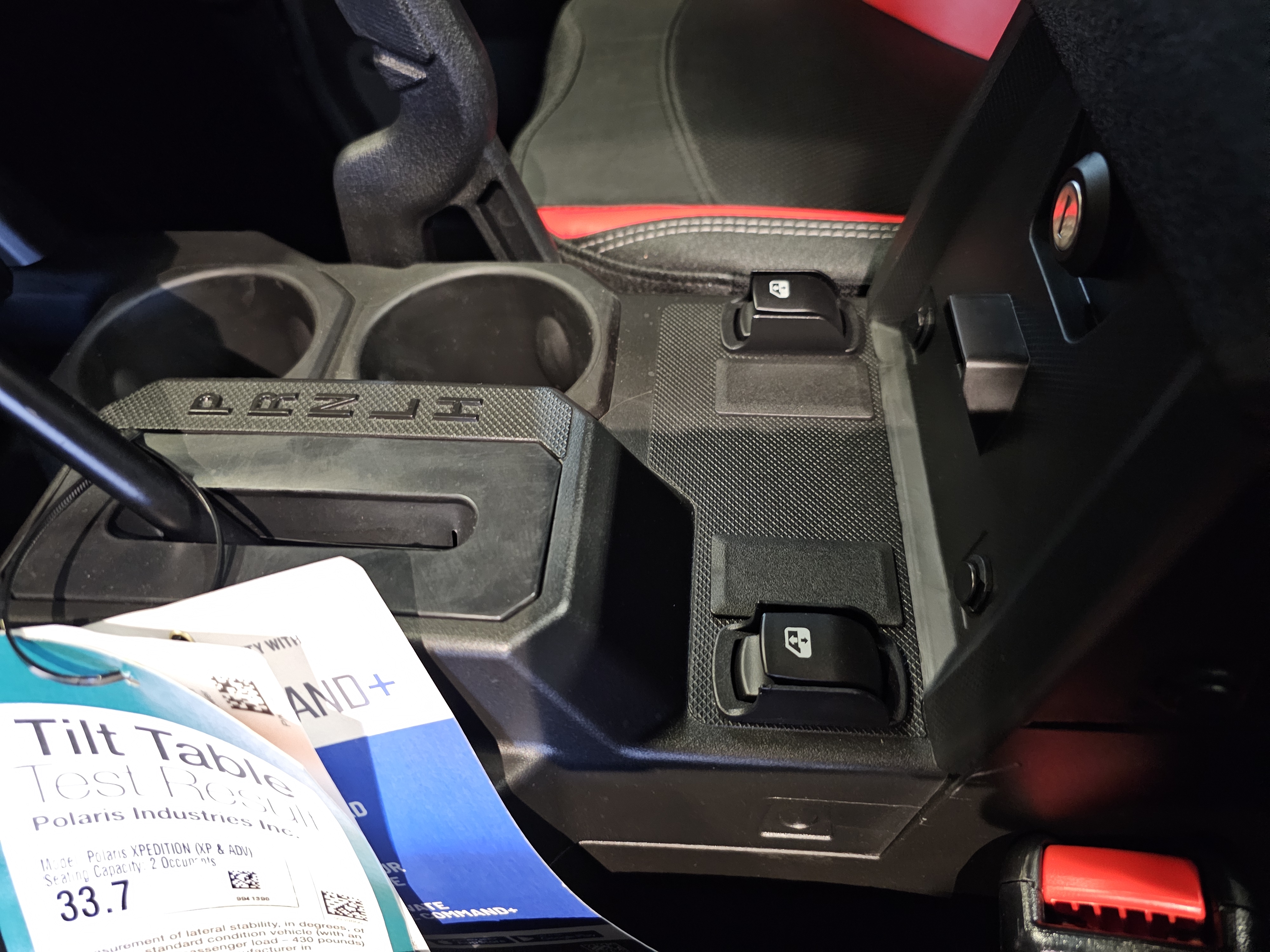 With available locking doors and center console, tilt and telescoping steering wheel, and adjustable bucket seats the Polaris XPEDITION cab allows for a tailored fit for yourself and your gear.