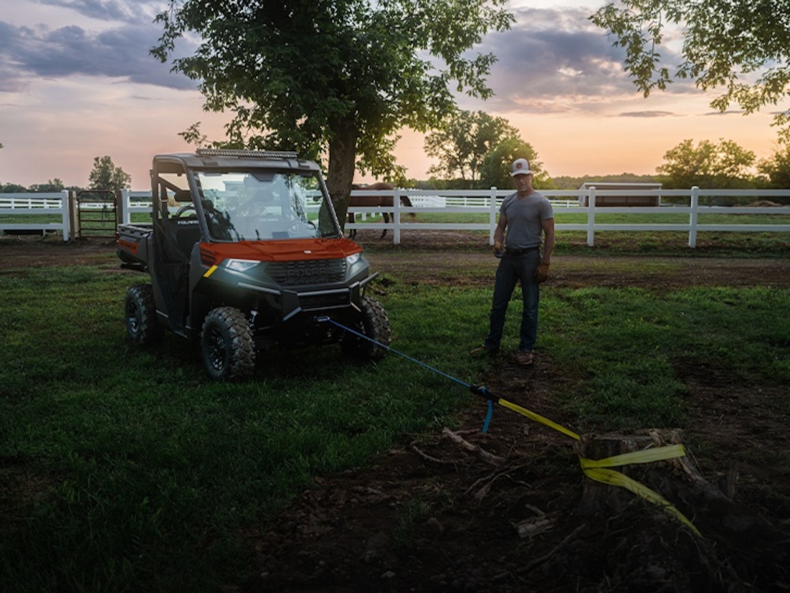 Complete the job or get back on the trail quicker, thanks to the pulling power of a factory-installed 4,500-lb. winch with synthetic rope, Auto Stop and wireless remote, available on RANGER 1000 Premium.