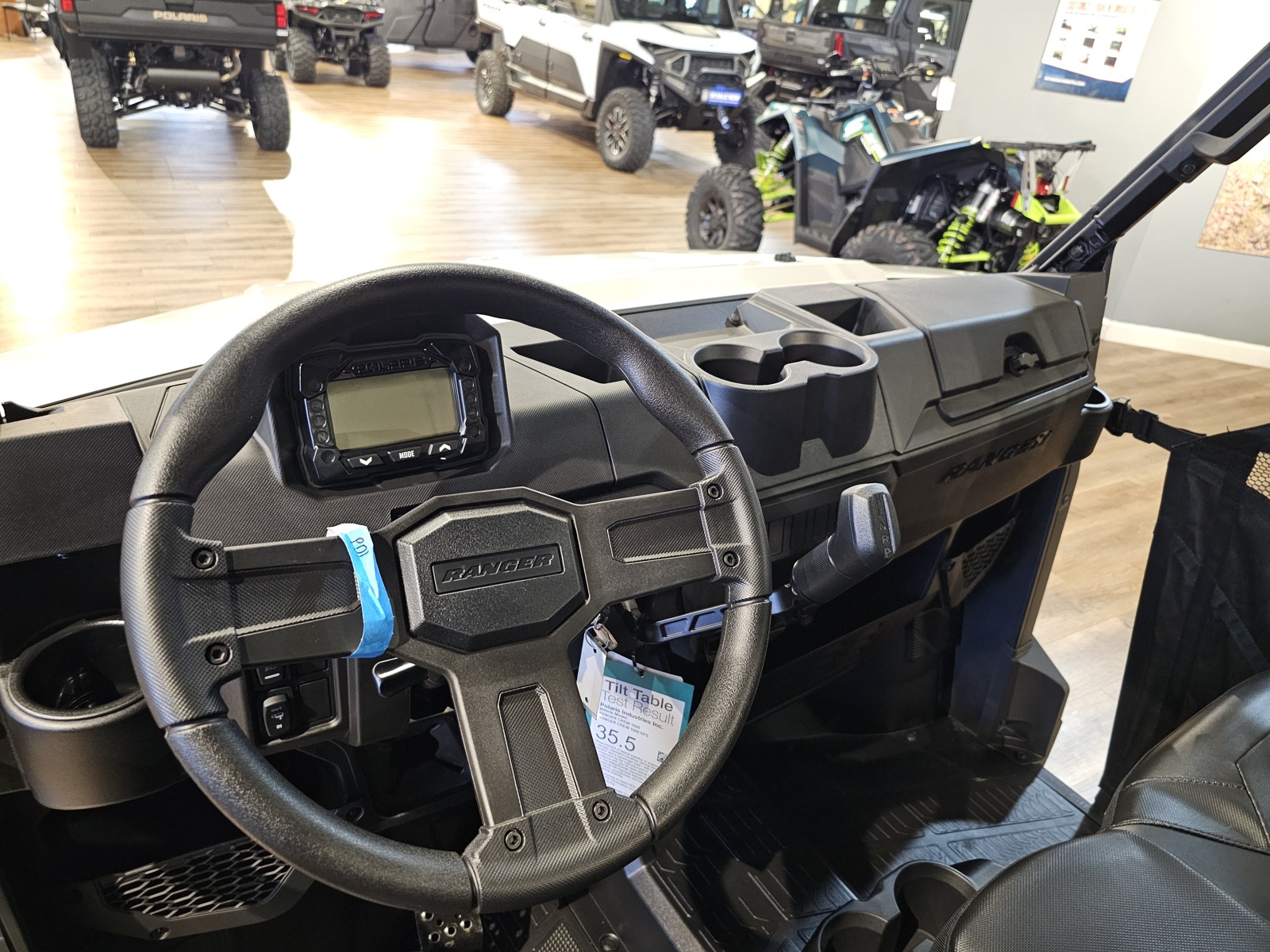 Ride more comfortably from sunup to sundown, thanks to a tilt steering wheel, plush seat cushions, and factory-installed roof (on Premium). Cab nets offer one-handed operation for easier entry and exit.