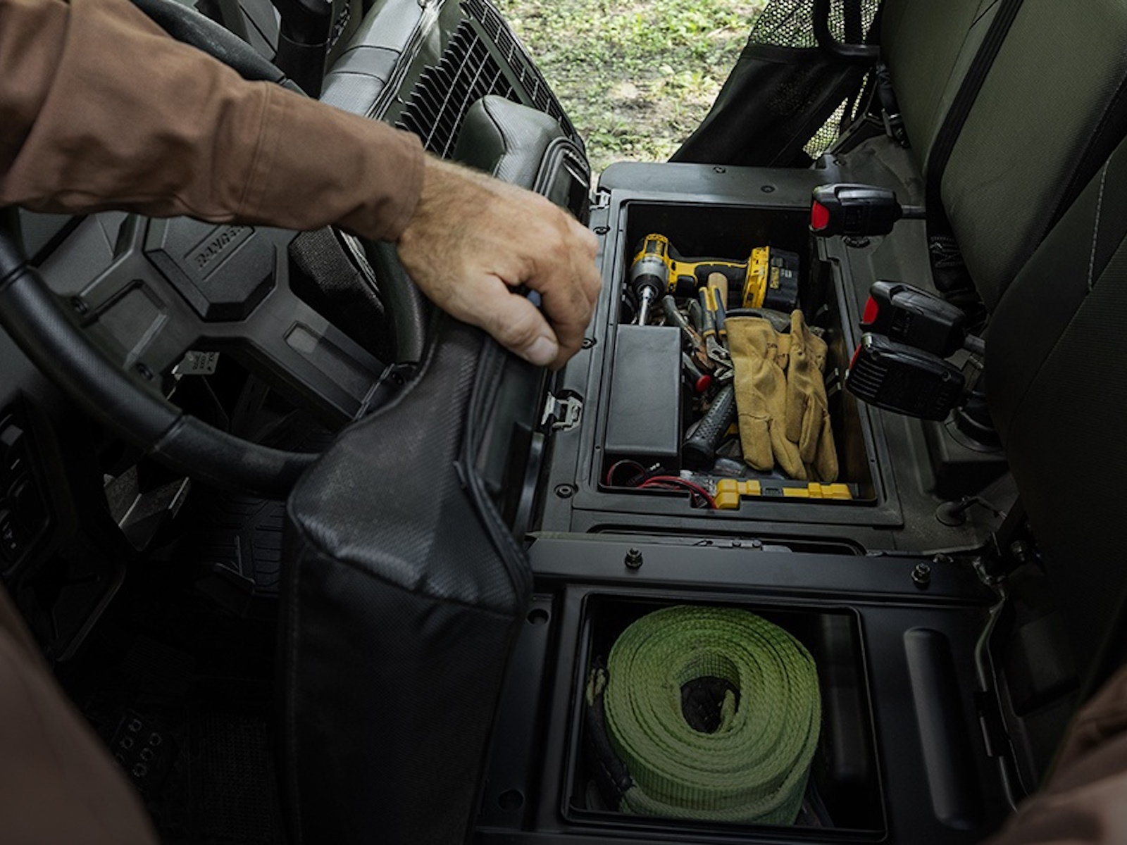 Take on a full day off road, with plush seating and integrated in-cab storage to stow your essentials.