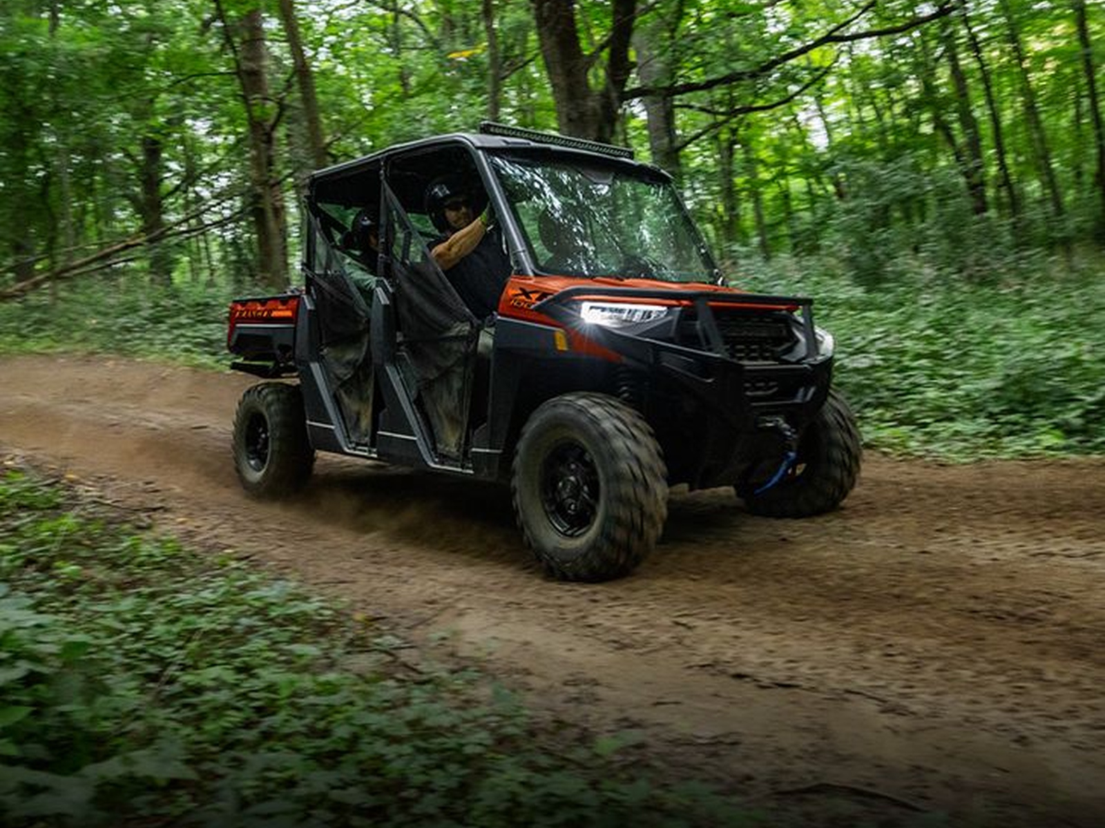 RANGER CREW XP 1000 Texas Edition is designed with your comfort in mind. You'll appreciate convenient in-cab storage and plush, contoured seats for extended days outdoors.