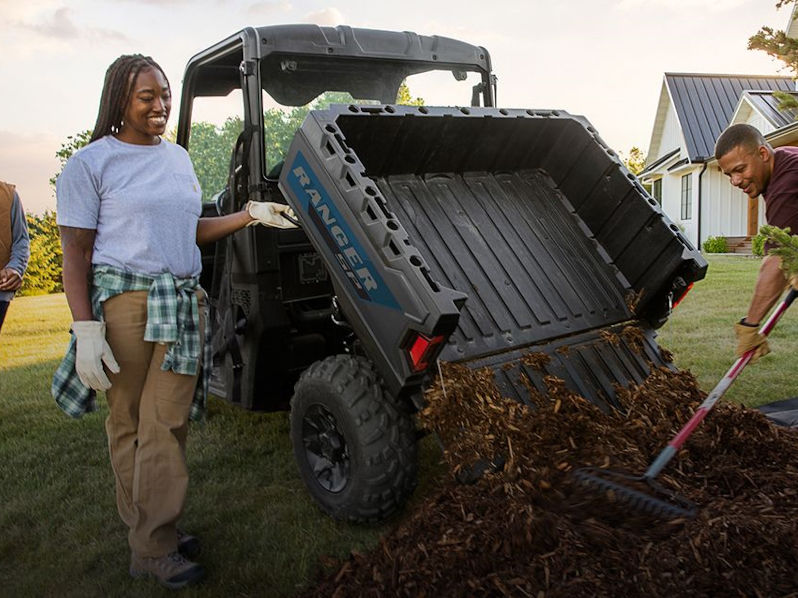 Get more done with SP 570. Efficiently carry and unload supplies with the gas-assist dump box and navigate rough terrain with on-demand AWD.