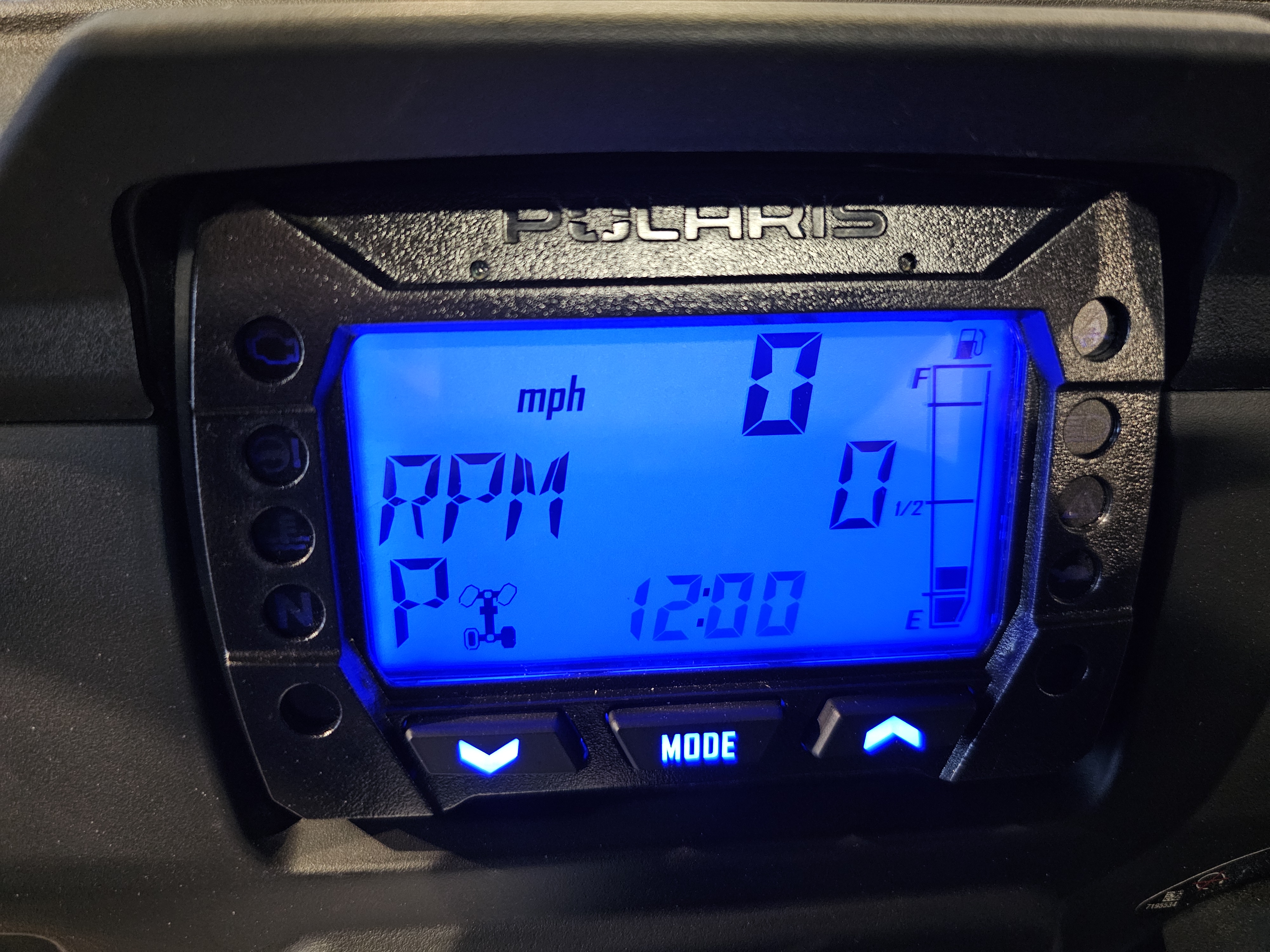 Driver: 4 in LCD rider information center: user-selectable blue/red backlighting and brightness, programmable service intervals, speedometer, tachometer, odometer, tripmeter. clock, hour meter, gear indicator, fuel gauge, coolant temperature, voltmeter, service indicator and codes, seat belt reminder