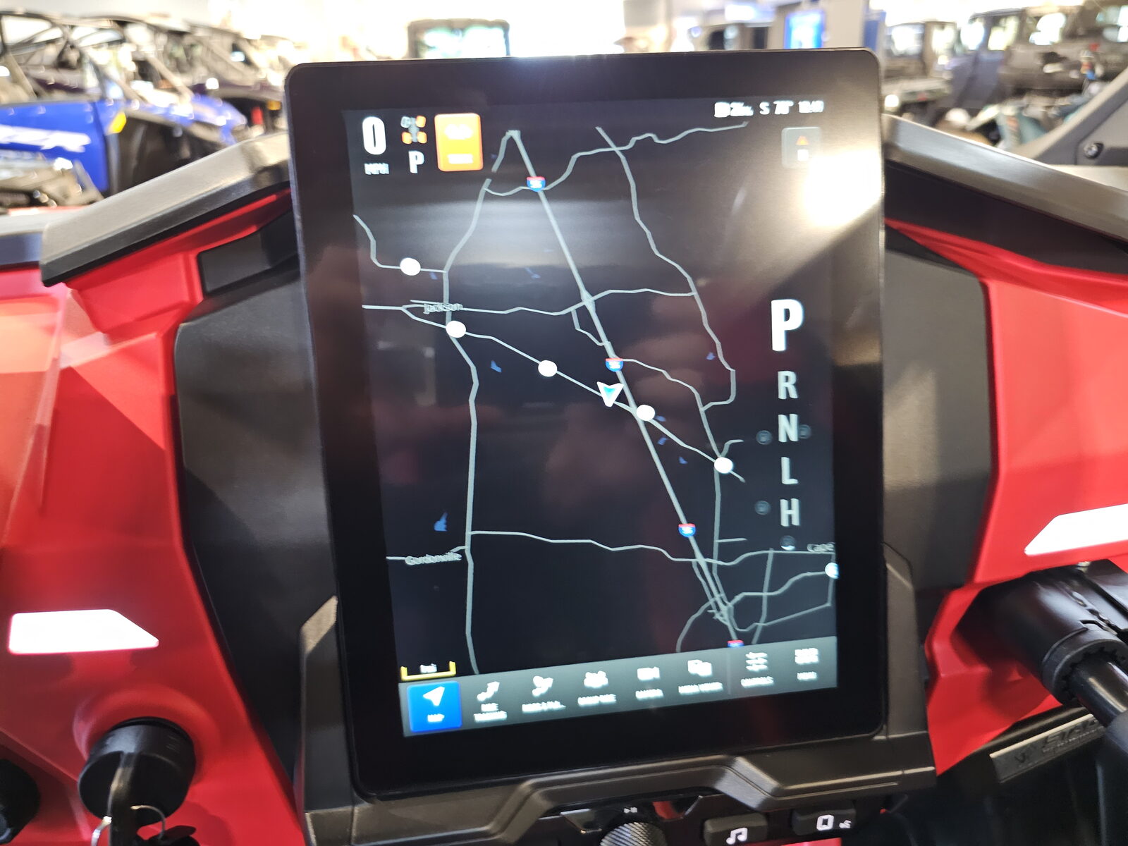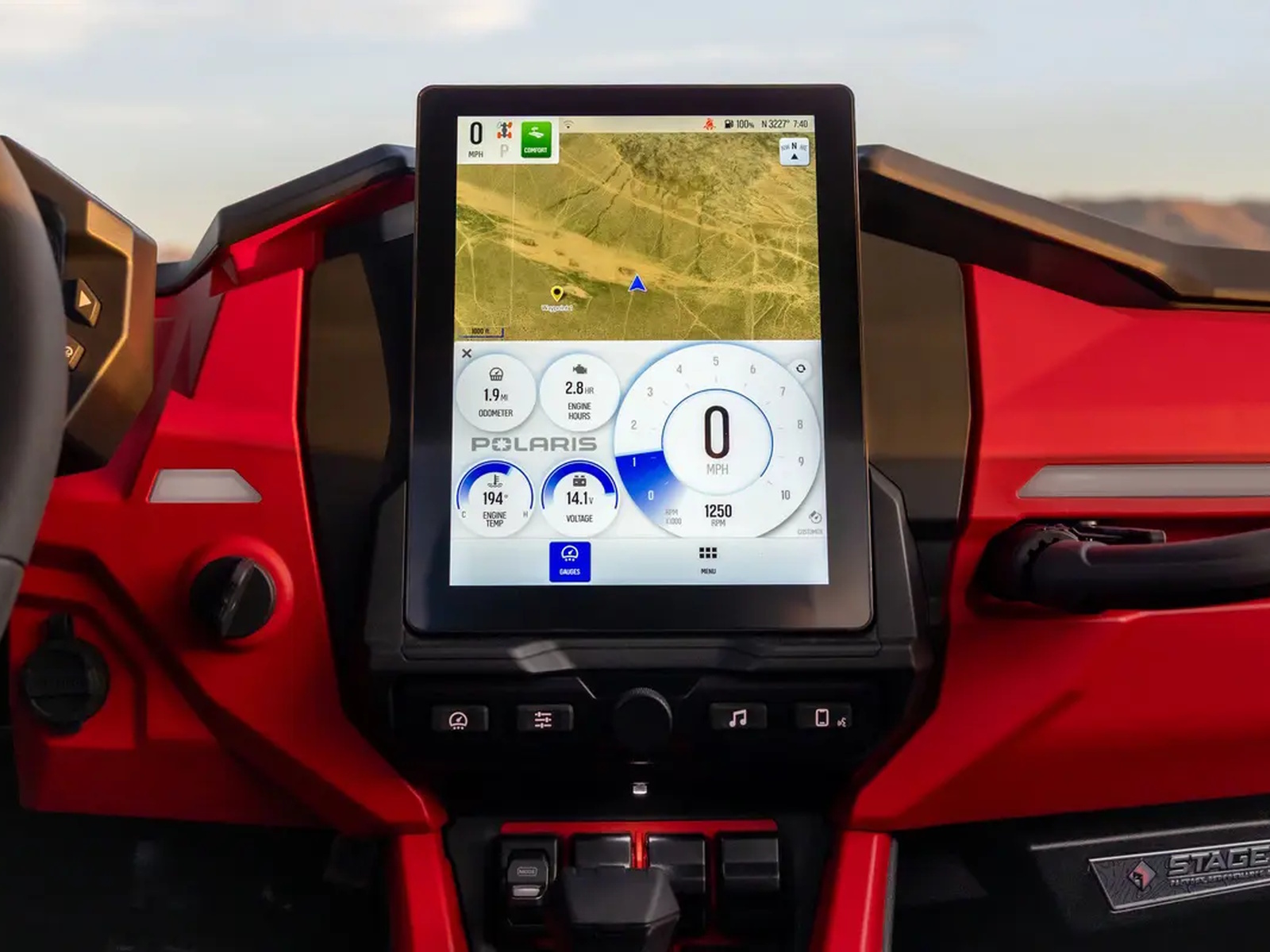 10.4 in (8.3 H x 6.2 W, 1280 x 960 Pixel) Display powered by RIDE COMMAND, featuring: Split-screen mapping (topographic & satellite w/ built-in GPS), Group Ride (cell-based or V2V), configurable gauges, controls, DYNAMIX visualizer, digital audio interface w/ Bluetooth & USB connectivity, AM/FM/Weather radio, hard buttons, volume knob, in-vehicle communications capable with optional Sena headsets