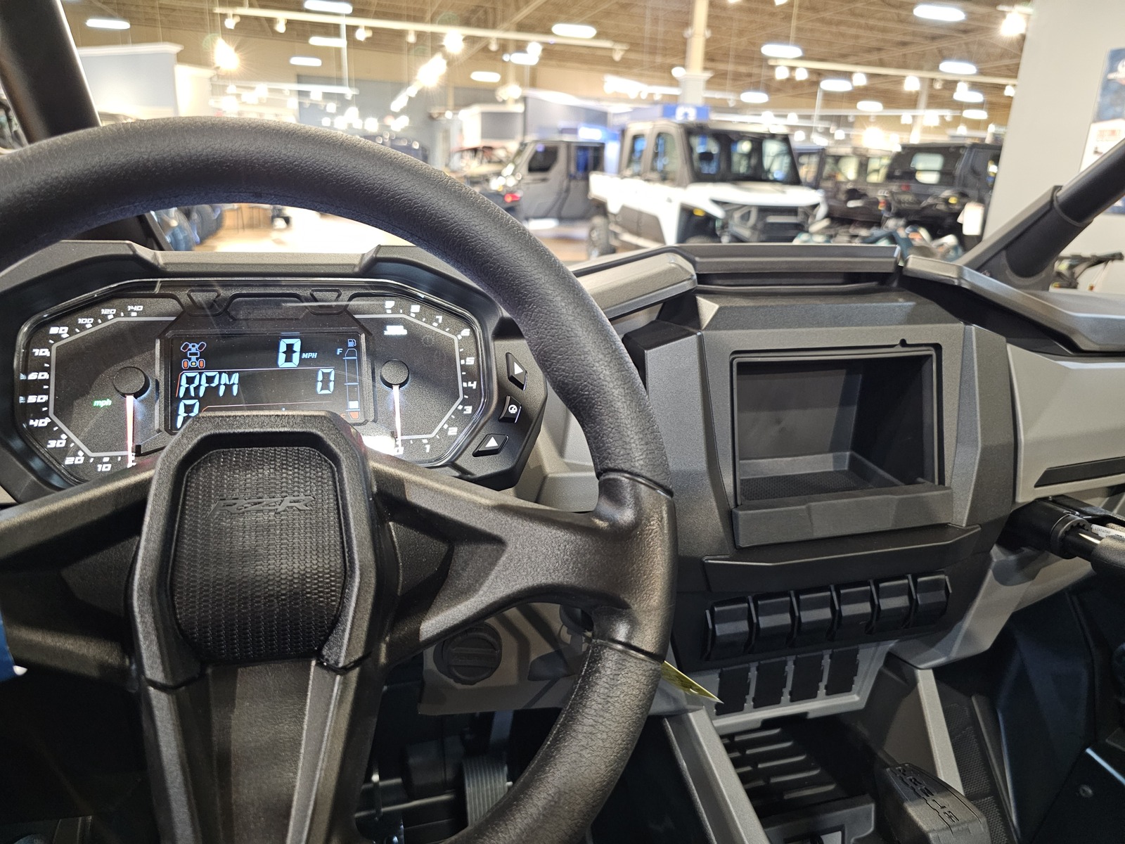 Driver Forward Information Center with 4" color display + rotary speedometer & tachometers, programmable service intervals, speedometer, tachometer, odometer, tripmeter, clock, hour meter, gear indicator, fuel gauge, coolant temperature, voltmeter, service indicator and codes, seat belt reminder light, gear indicator, DC outlet, Polaris P.A.S.S anti-theft system