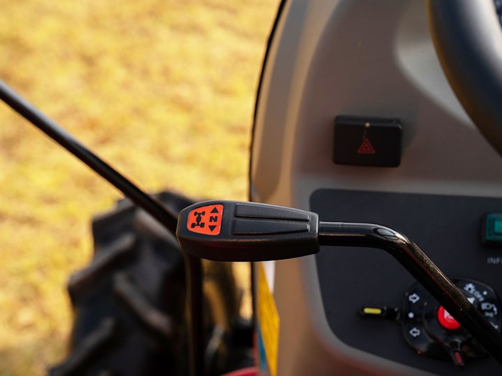 - Along with in-cabin controls, this tractor has an external position lever near the 3-point hitch. Operators can adjust attachment positions immediately after connection without returning to the cabin, enabling quick and convenient attachment switching, which enhances tractor versatility.