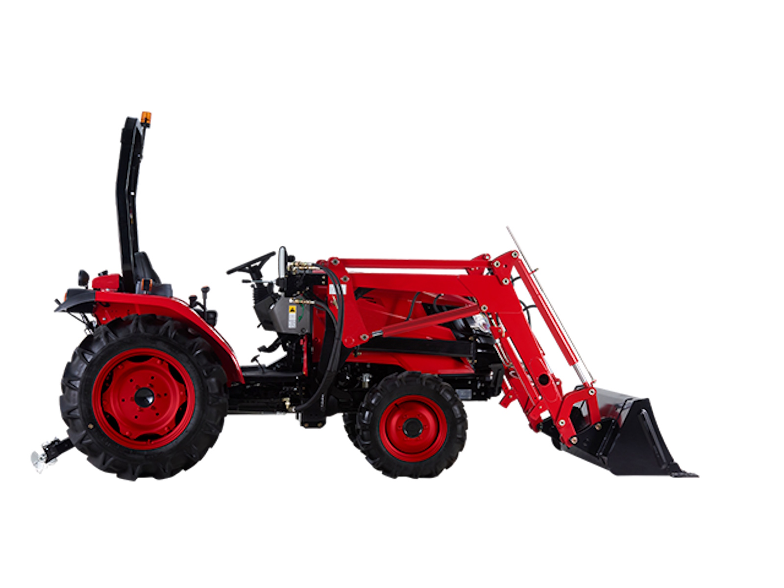 - Equipped with a powerful, Stage V certified 4-cylinder engine, this tractor has an output comparable to utility tractors while maintaining the dimensions of a sub-compact tractor. The durable body and efficient engine come together to perform medium-duty applications efficiently and productively.