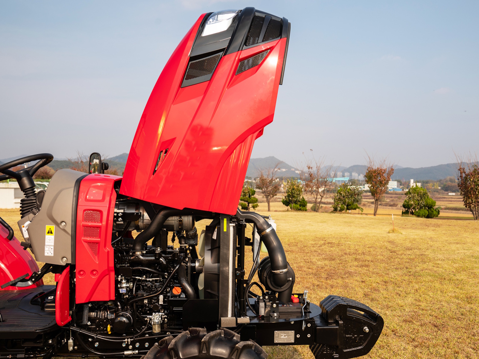 - The tractor hood can be opened in one motion, providing easy access to the engine and other systems for daily checks, routine service, and maintenance. The side panel can also be removed easily without the need for specialized tools.