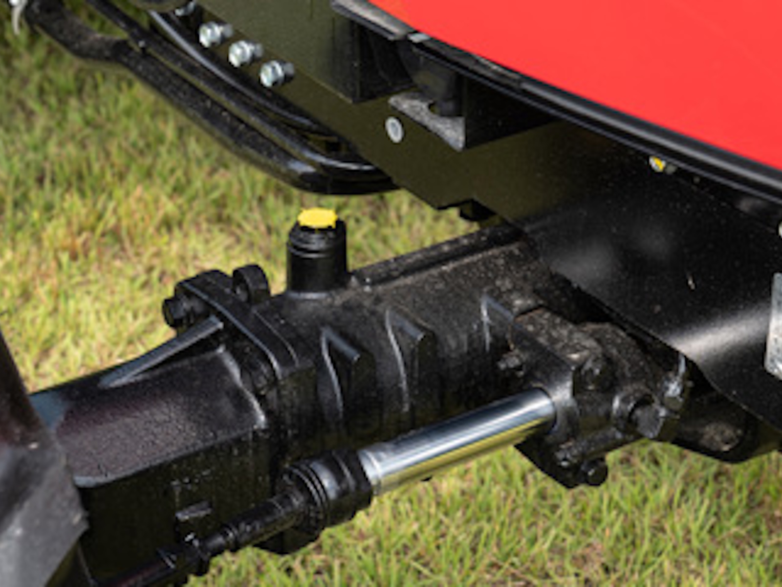 • The heavy-duty 4WD front axle enables the tractor to lift heavy loads and tow large attachments while absorbing shock and maintaining stability. Powerful hydraulics support the power steering system, which uses a dual-action mechanism with a hydraulic cylinder and tandem-type hydraulic pump.