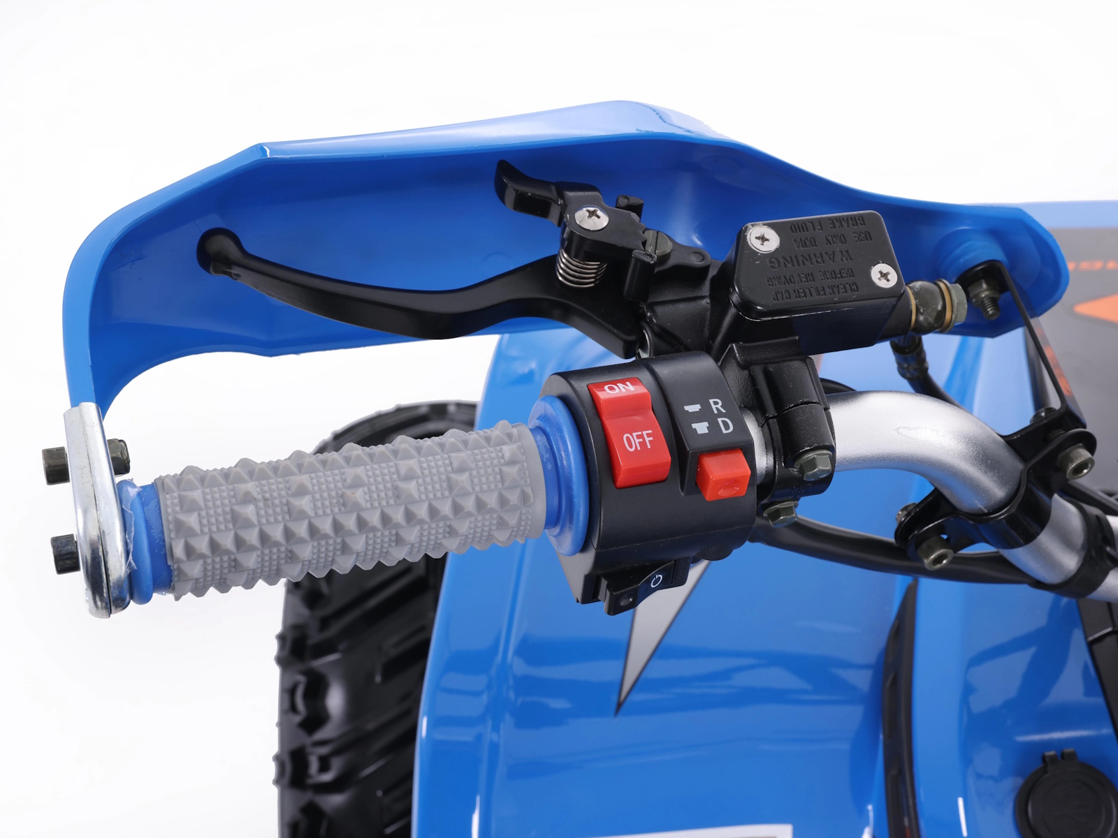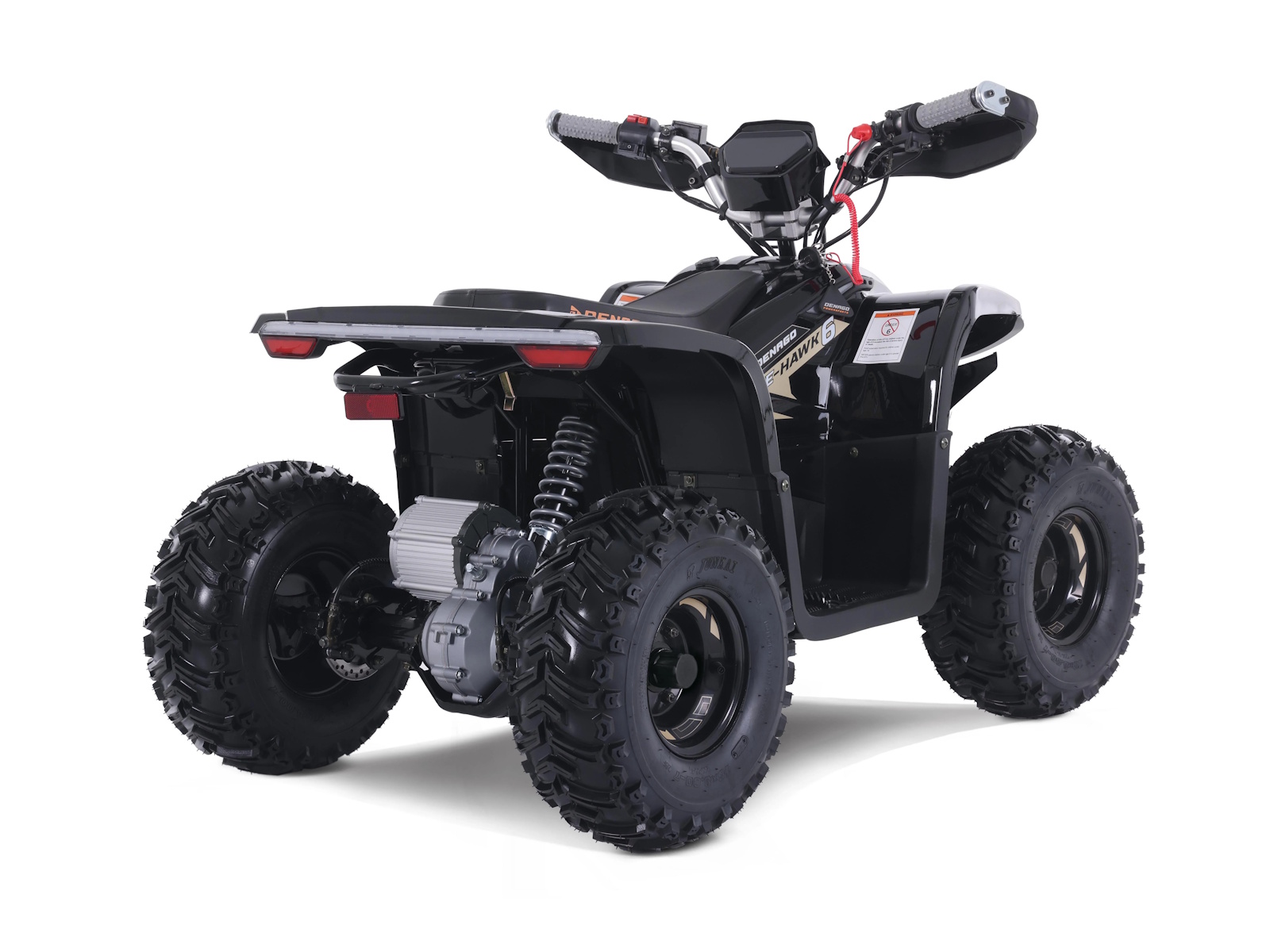 The E-Hawk’s 1600-watt electric motor provides effortless torque that quickly vaults the ATV to its Youth6-mandated 15-mph top speed. Its power will even impress bigger riders.