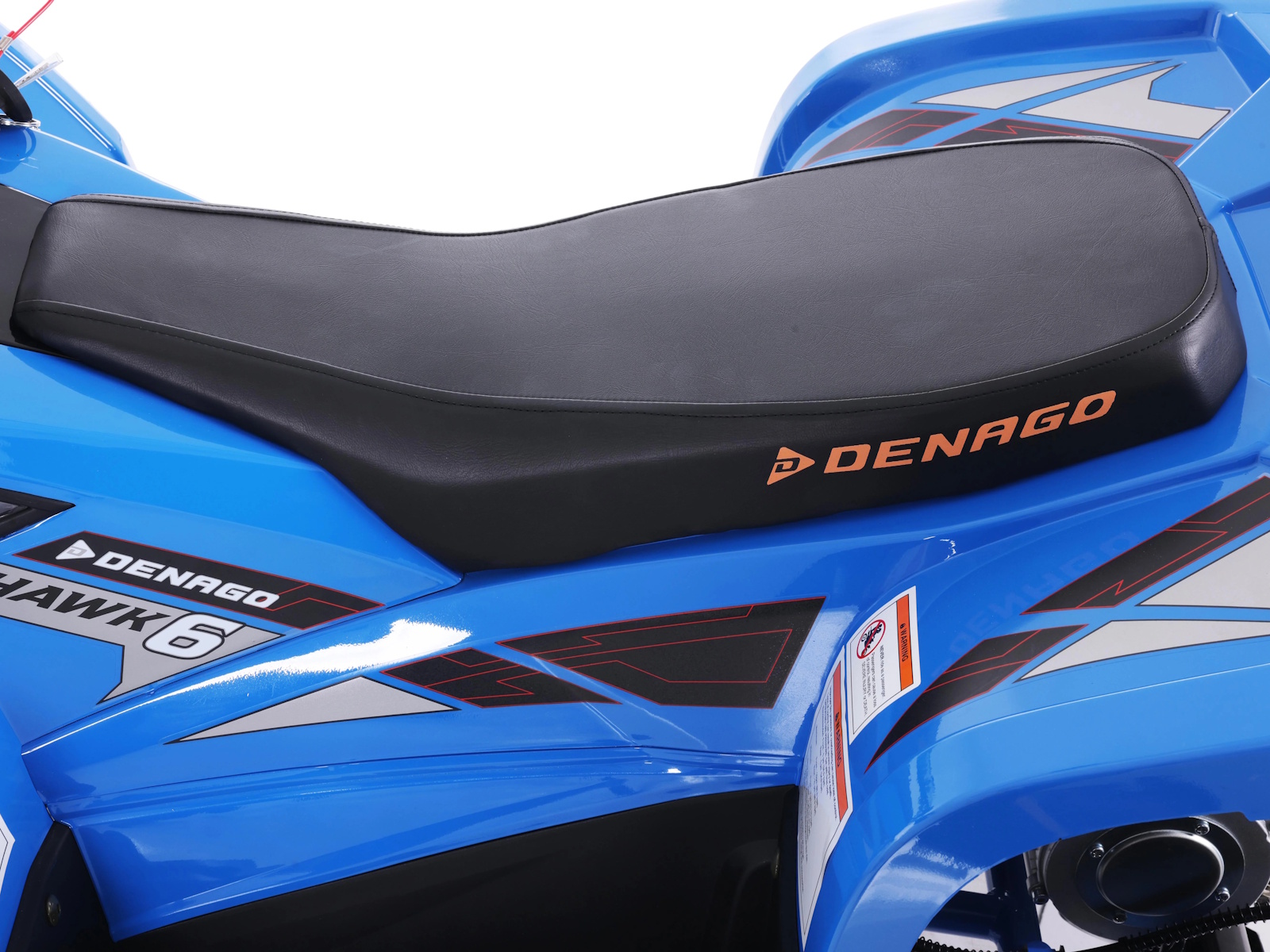 The E-Hawk 6 is the safest way to introduce kids to powersports. Parents can use the Denago smartphone app to limit the vehicle’s speed in 5-mph increments and can monitor the ATVs location. An emergency remote shut-off switch can immediately disable the E-Hawk if kids misbehave. The direct drive open differential offers class-leading rollover mitigation.
