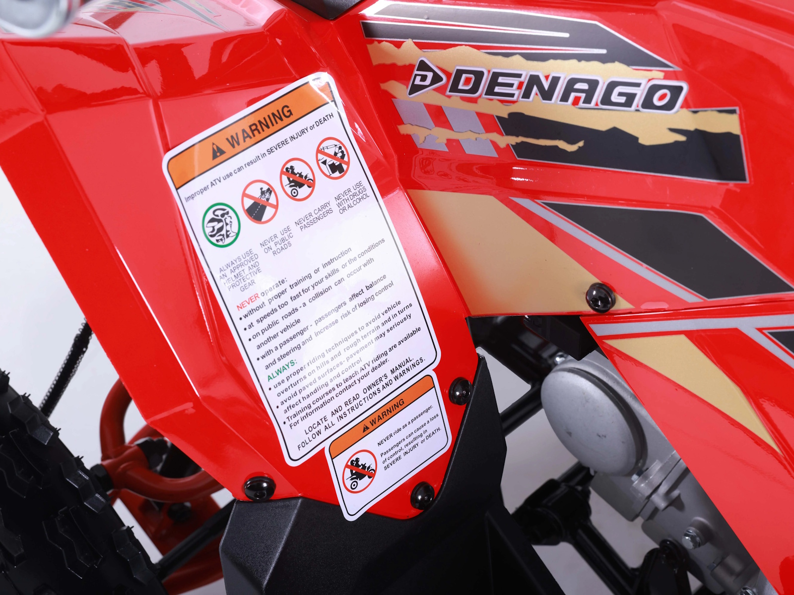 A youth sport quad like the Trailhawk 10 FI is meant to be ridden hard, and braking, like acceleration, must be on point. Denago accomplishes this task using high-performance hydraulic discs for both the front and rear.