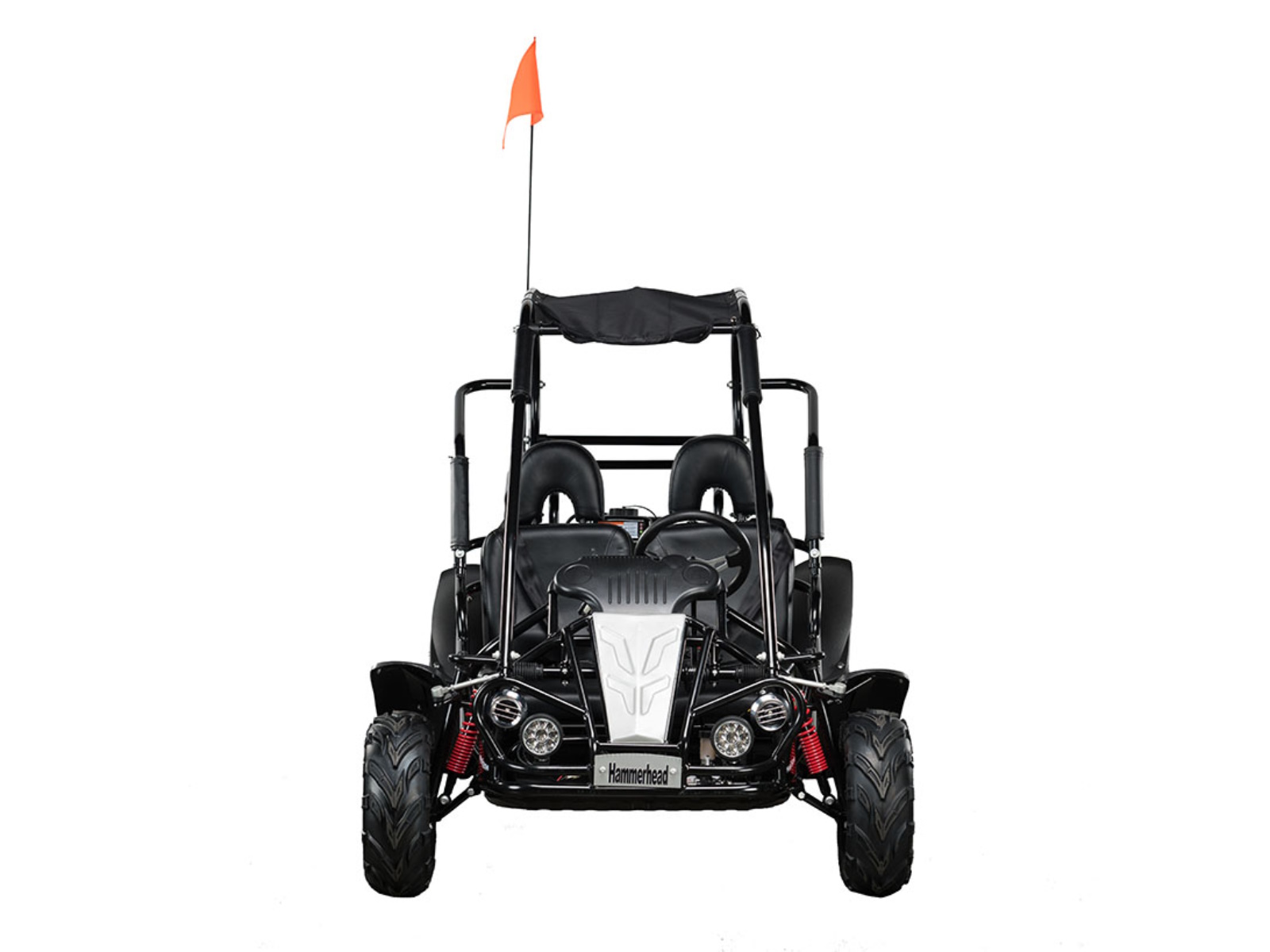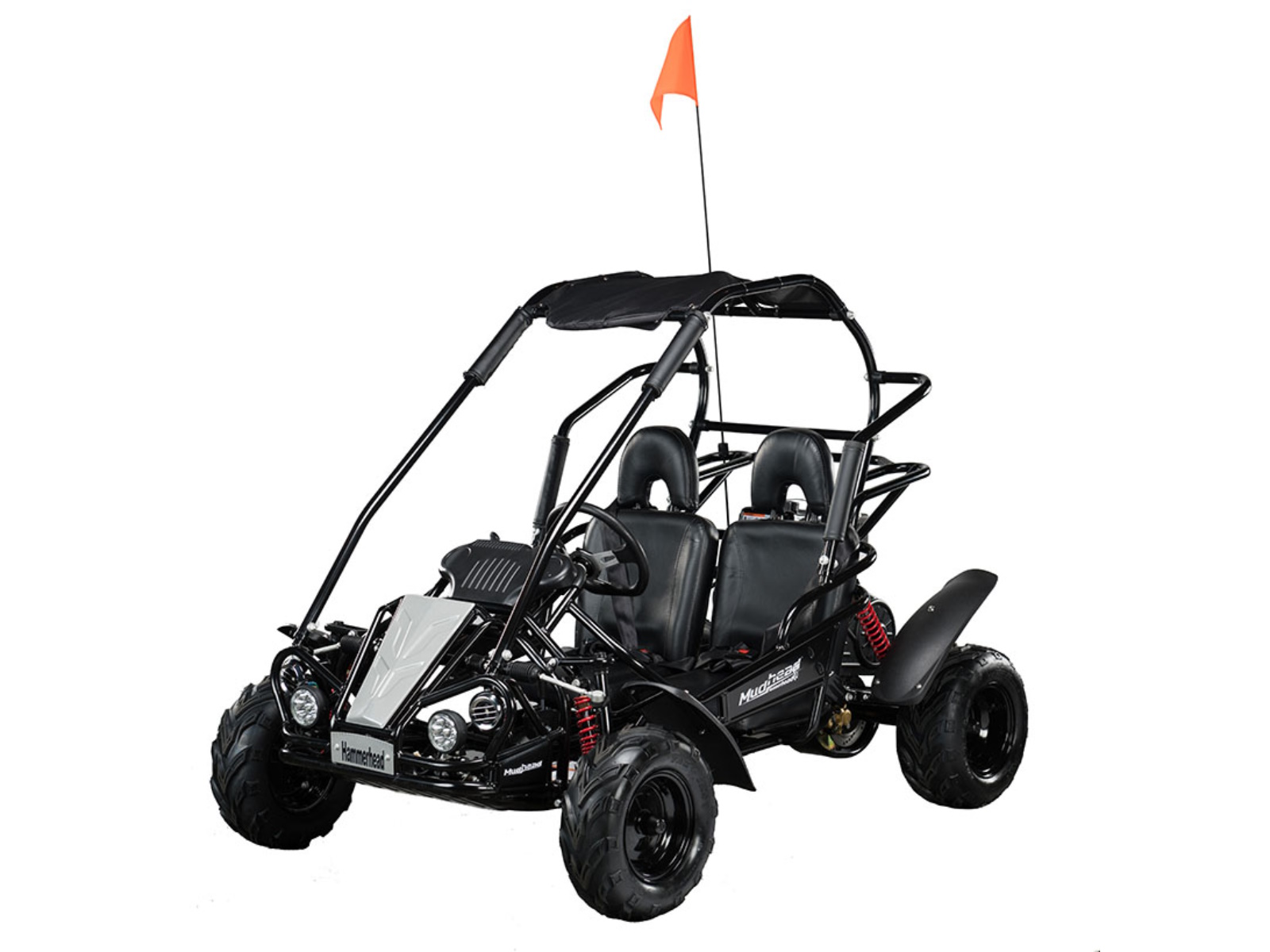 The Hammerhead MudHead 208R, a size up from the Torpedo, is now available in six colors. The MudHead 208R comes equipped with reverse and a 208cc (6.5 HP) LCT electric-start engine utilizing a manual choke for all-weather starting. Other standard features include an adjustable driver’s seat, LED headlights, and a throttle governor.