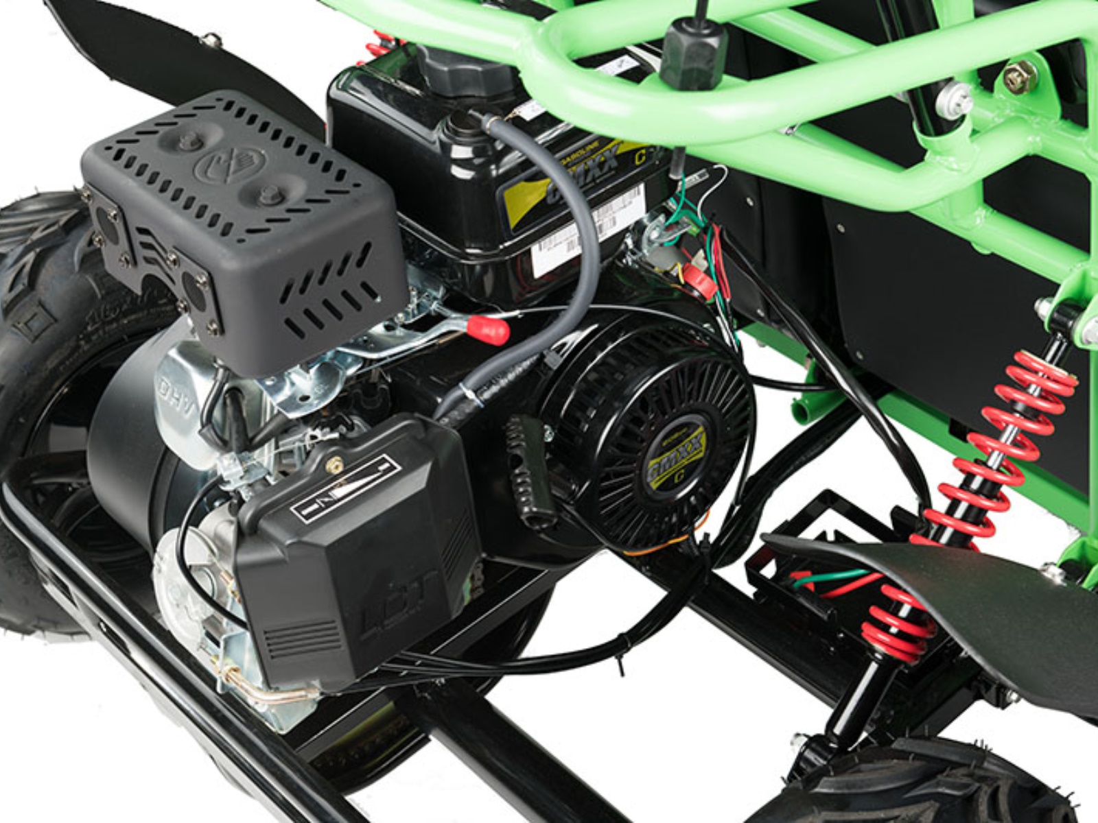 The Hammerhead MudHead 208R, a size up from the Torpedo, is now available in six colors. The MudHead 208R comes equipped with reverse and a 208cc (6.5 HP) LCT electric-start engine utilizing a manual choke for all-weather starting. Other standard features include an adjustable driver’s seat, LED headlights, and a throttle governor.