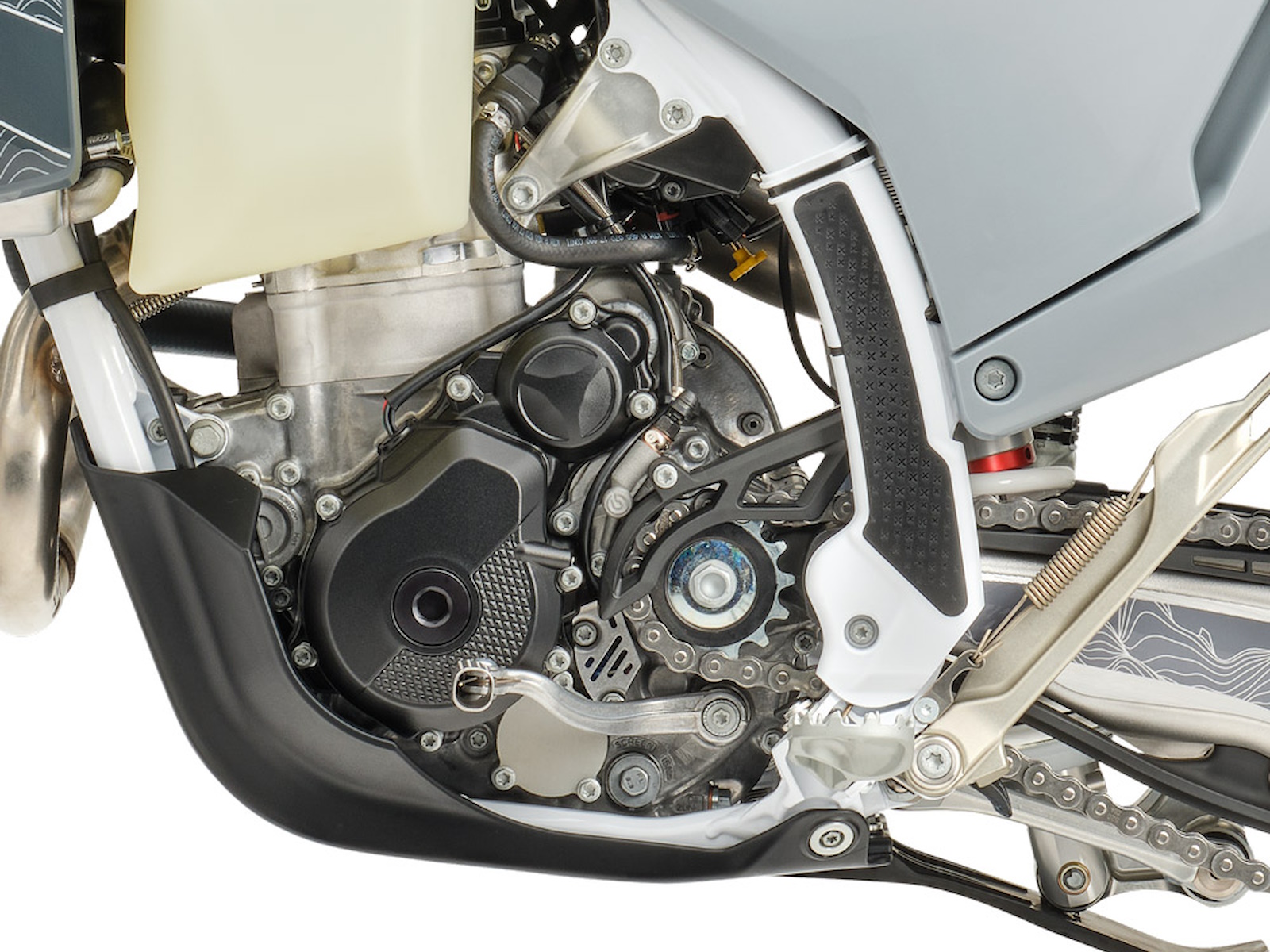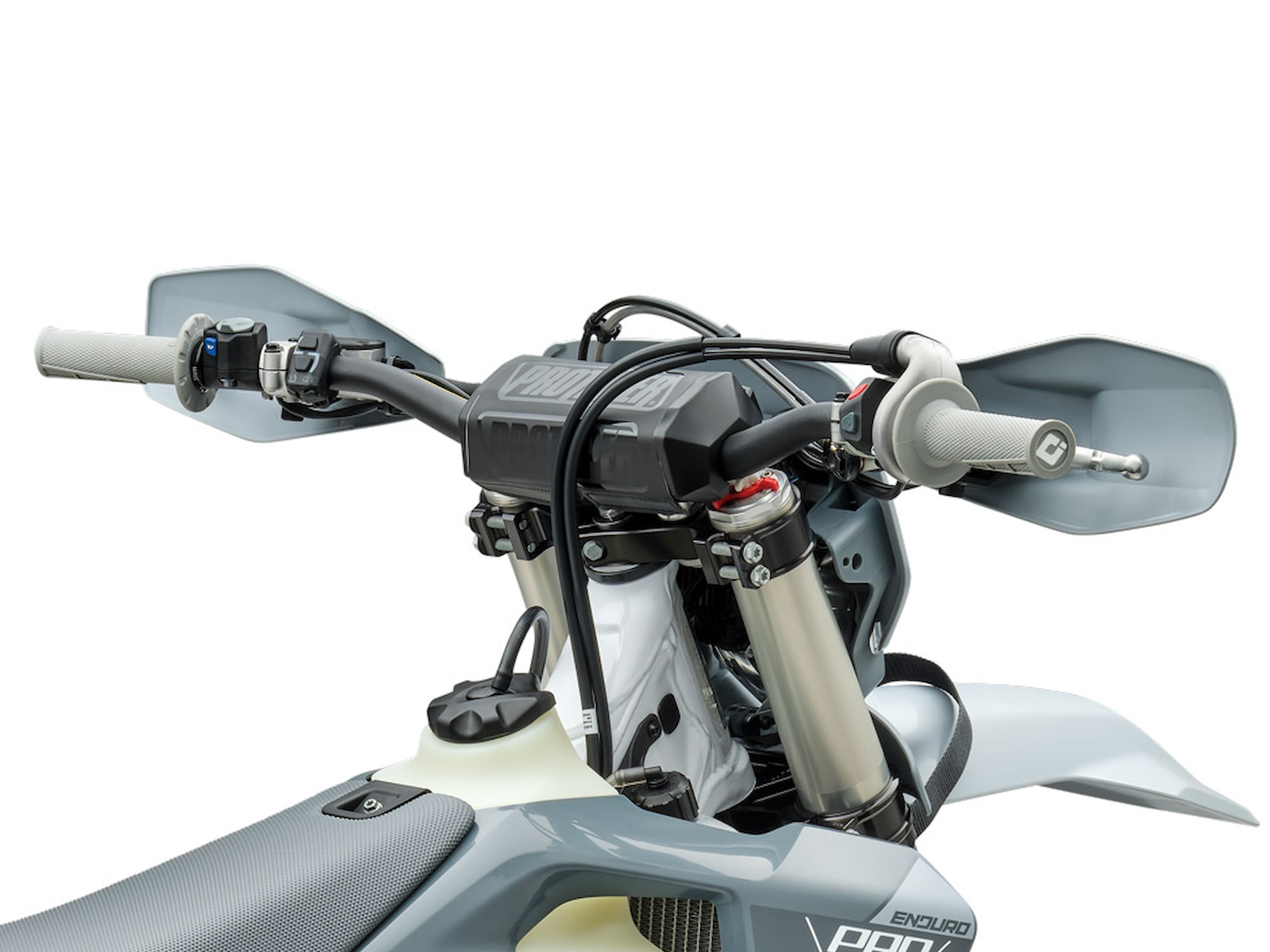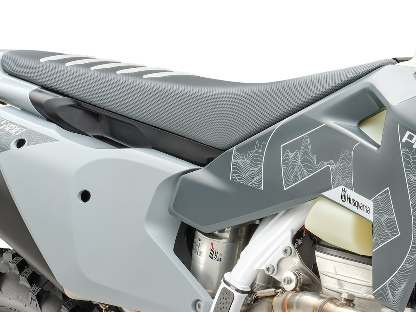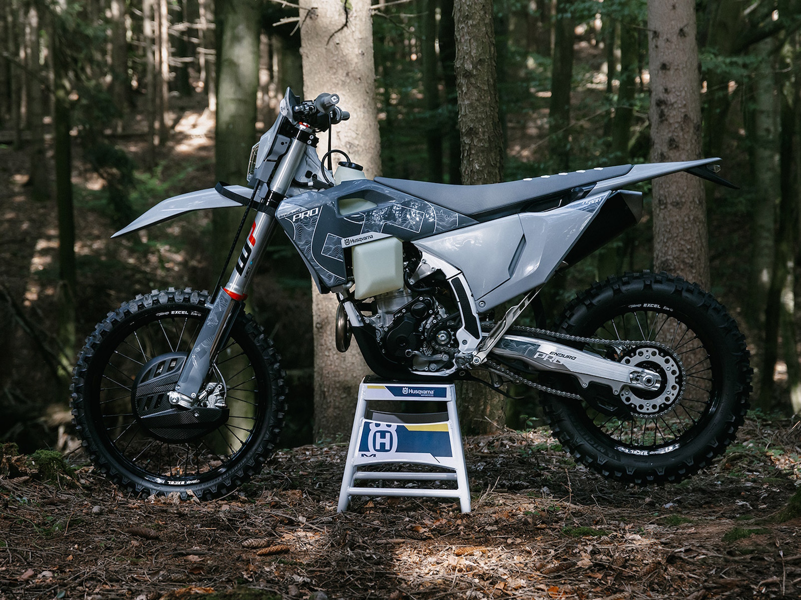 Own the trails with the versatile FE 350 Pro. Based on the world-renowned standard machine, the distinctive, competition-focused motorcycle takes performance to an even higher level. Improved rideability comes from the addition of an extensive list of Technical Accessories, each selected for its ability to enhance durability and overall capability. Multiple electronic rider aids allow for customisable power, depending on preference and terrain. All features - including Traction Control and a Quickshifter - are easily activated using the Map Select Switch, which also enables toggling between two engine maps. With their proven success in racing, components from GALFER, Michelin, Twin Air, Supersprox, and ProTaper underline the premium build quality of the FE 350 Pro.