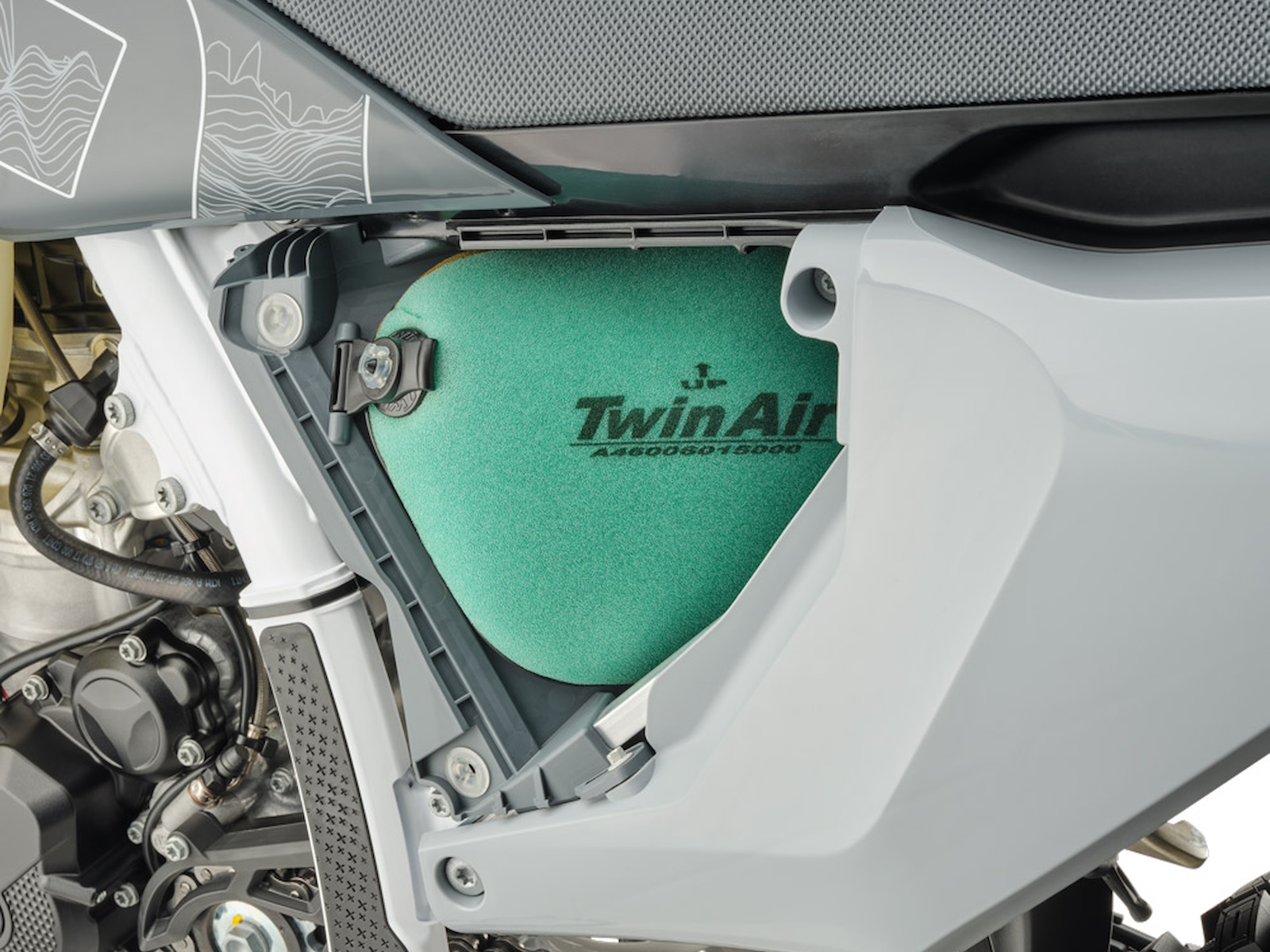 With precisely positioned inlet ducts to reduce air flow deformation, the airbox ensures unrestricted airflow with maximum filter protection. The Twin Air filter is mounted onto a cage designed to offer accurate installation and can be easily accessed without tools by removing the left side panel.