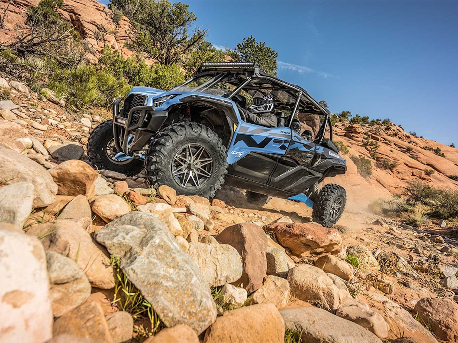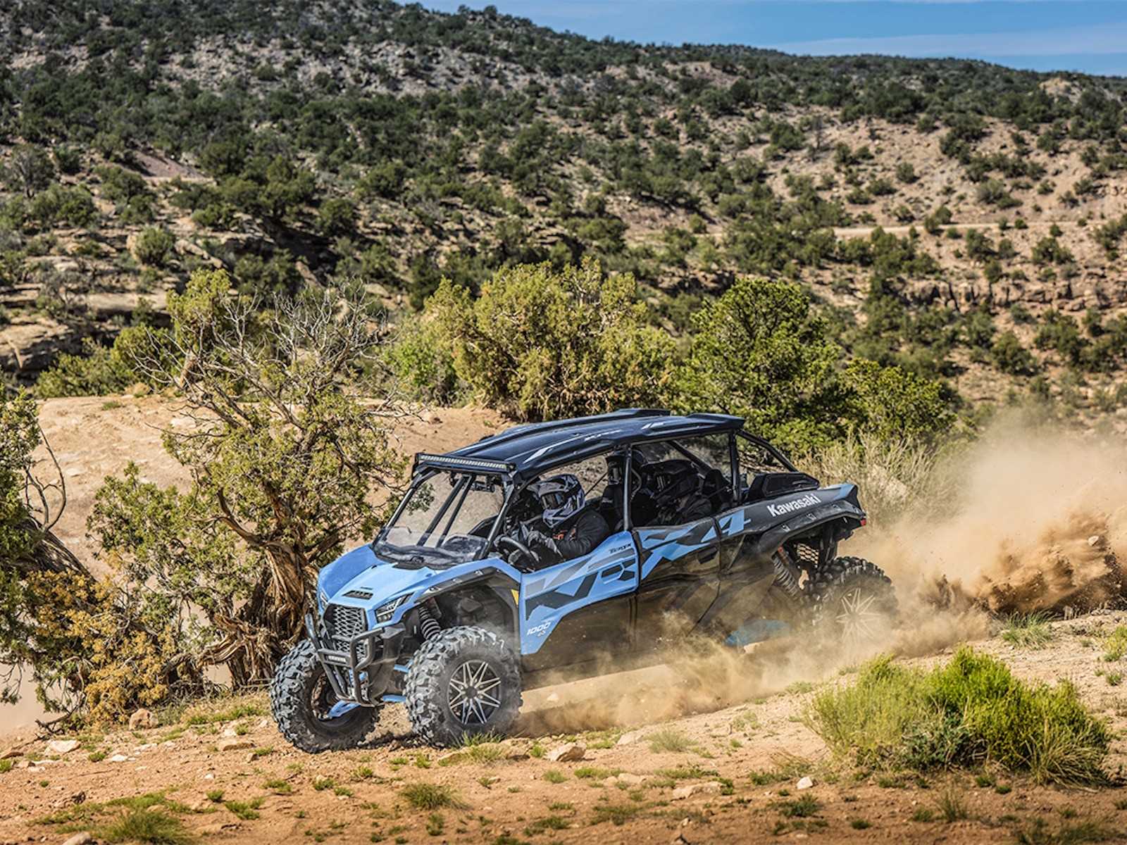 Dominate Adventure with more friends and family with 4-passenger seating on the new Teryx® KRX4™ 1000. With an enlarged chassis, no sacrifices were made to accommodate the additional passengers. Advanced suspension technology combined with beefy wheels and tires deliver the ultimate riding experience. The Teryx KRX4 1000 reinforces and elevates the reputation of purpose-built Kawasaki sport side x sides.