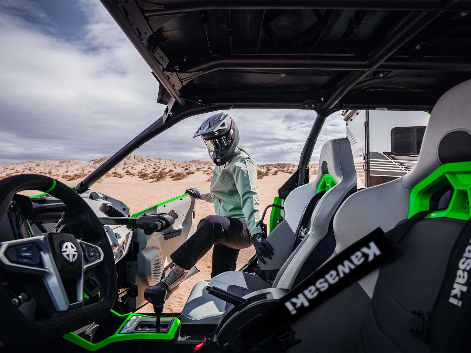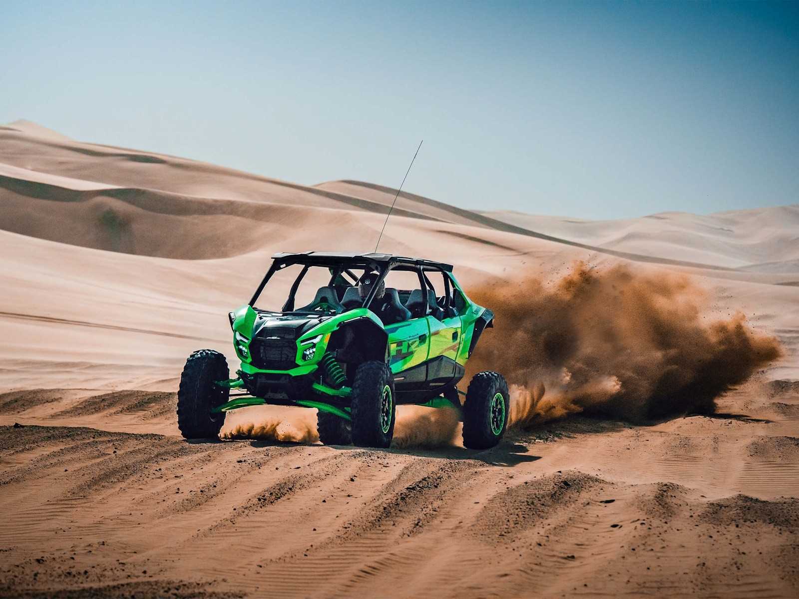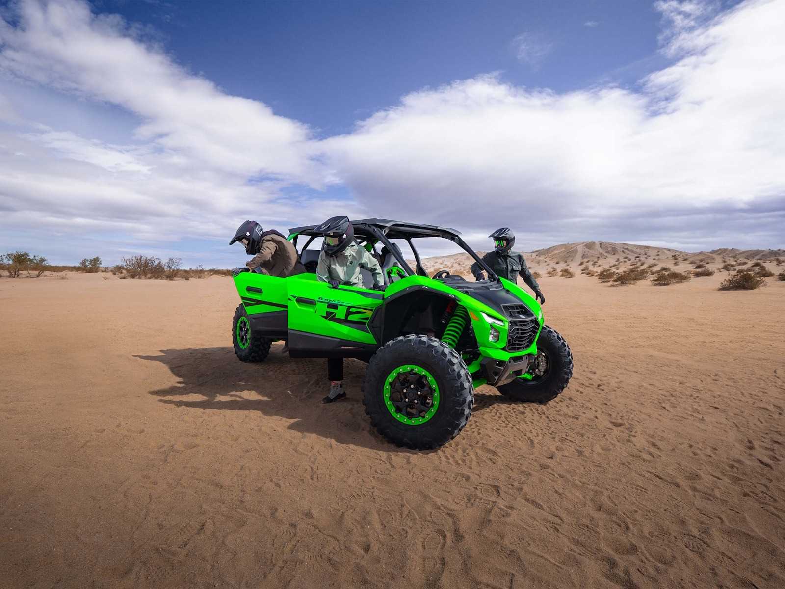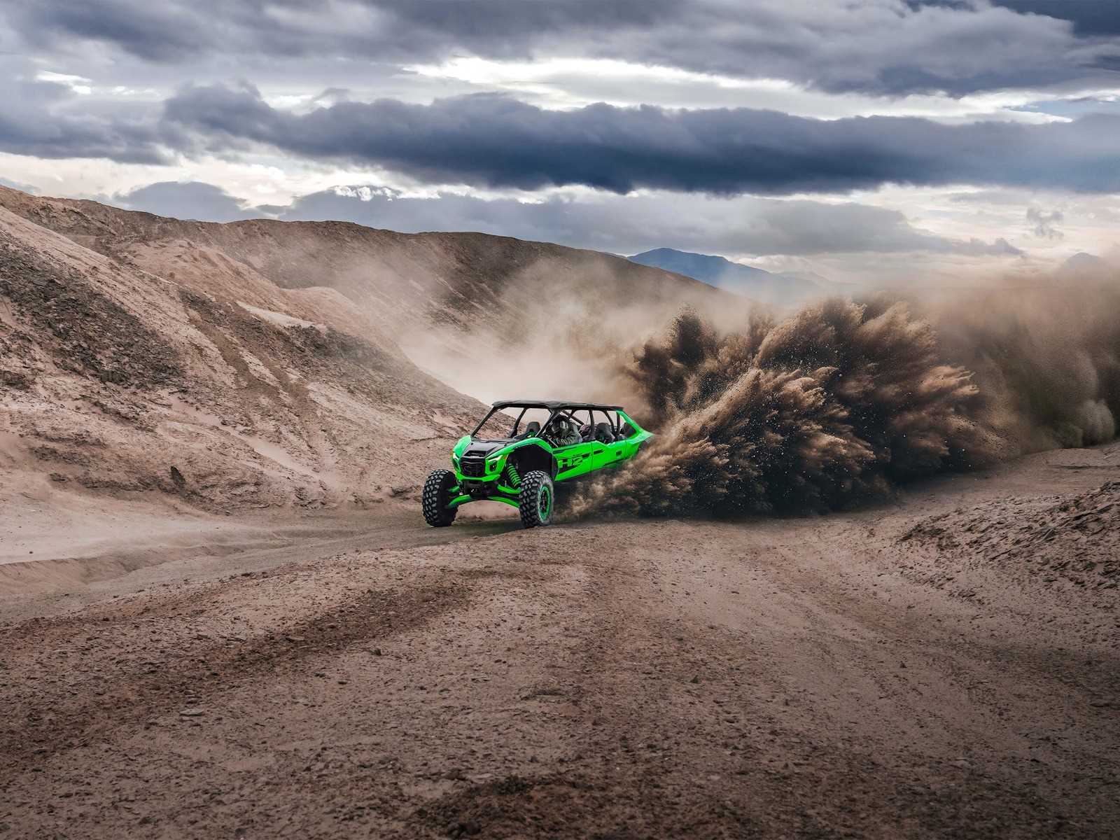The all-new Teryx®4 H2 and Teryx®5 H2 high-performance side x sides are designed for dune and desert domination. The 250-HP¹ 999cc in-line 4-cylinder supercharged engine is harnessed by a continuously variable transmission (CVT) and a highly rigid frame complemented by long-travel suspension that helps balance the engine's massive power for maximum control. Predictable handling and confident stopping power add to the well-balanced package delivering maximum fun that can be shared with the whole family.