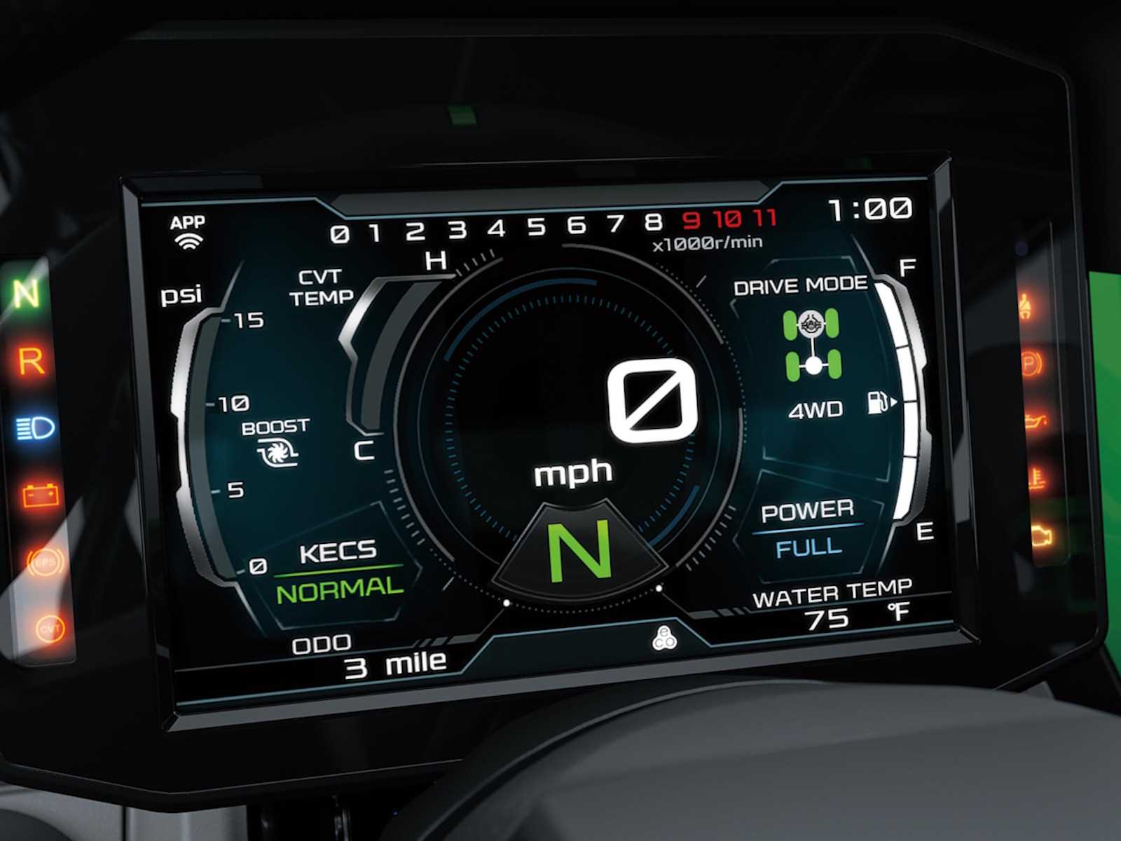 - 7-In High-Grade Full-Color Tft Instrumentation With Smartphone Connectivity Via Rideology The App Powersports†