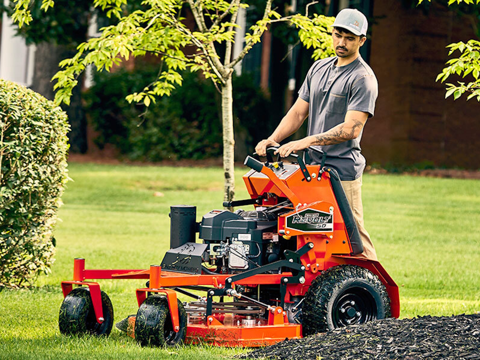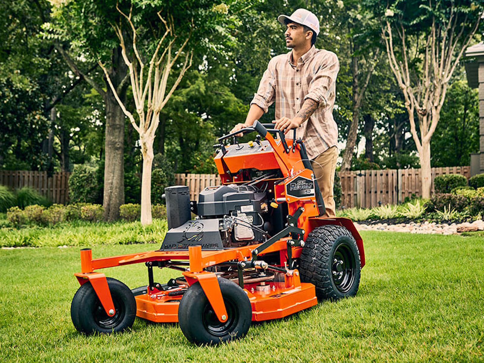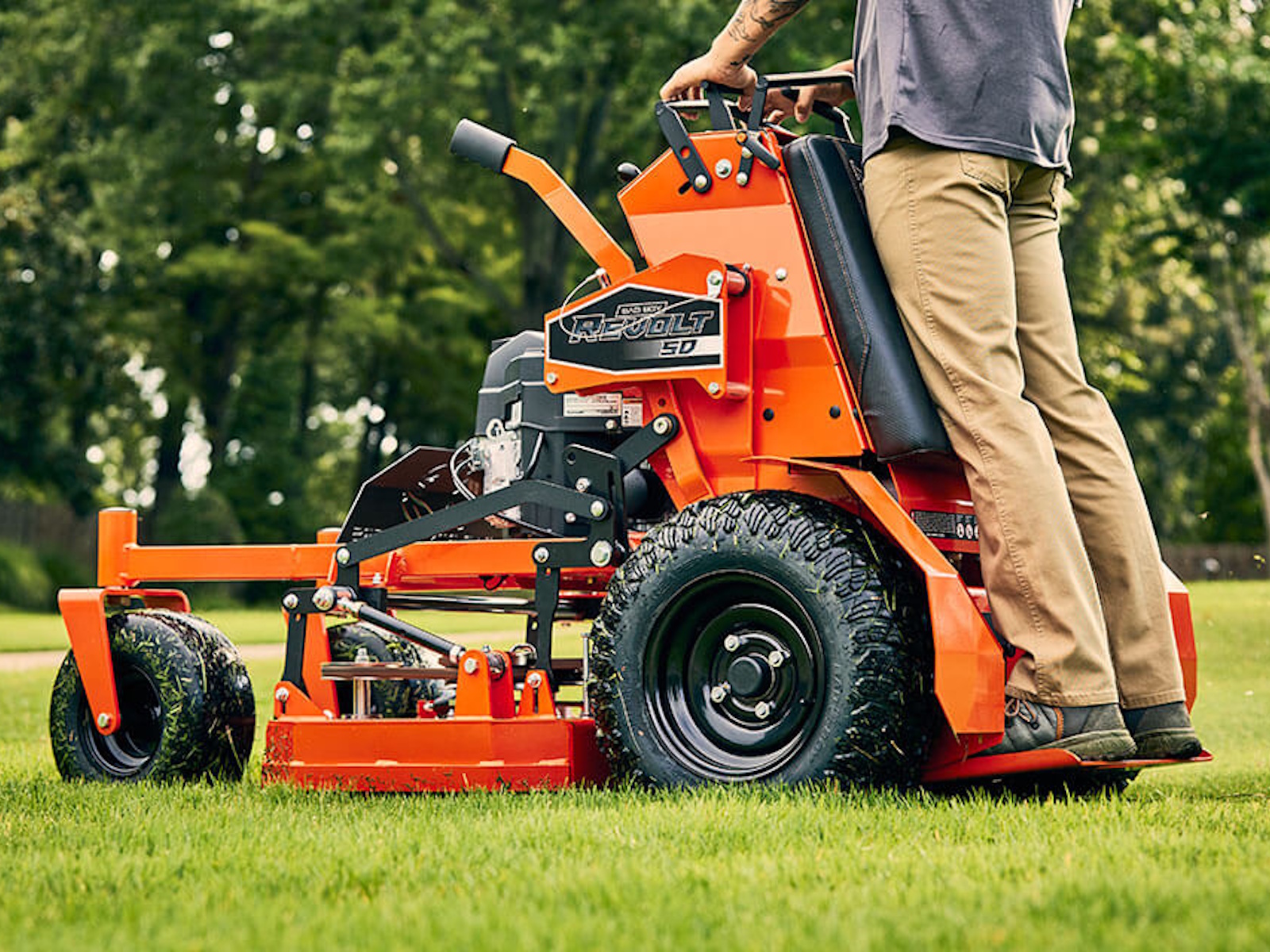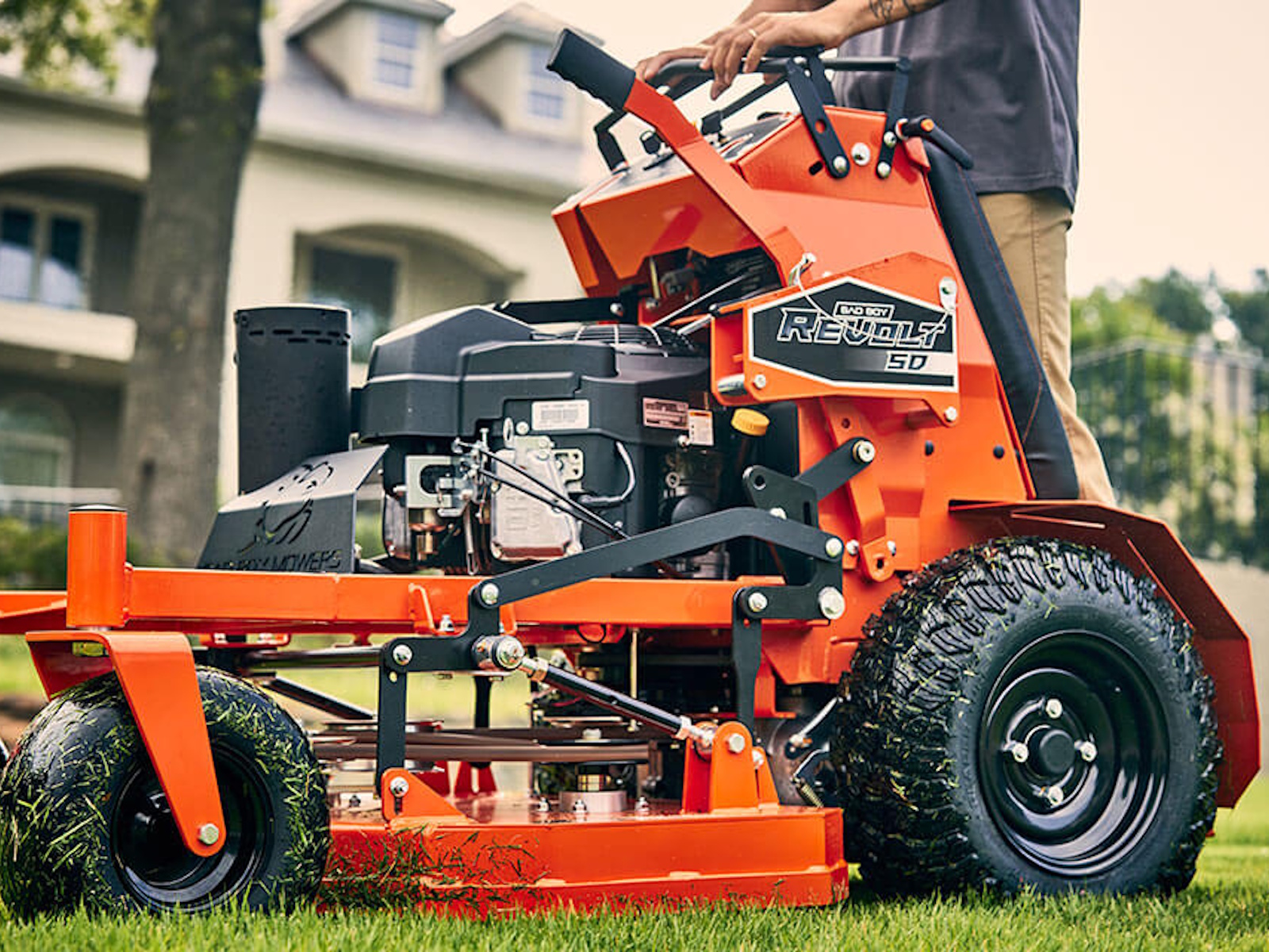 This is the residential stand-on mower that stands out from the competition. Dual High-Performance Hydro-Gear Integrated Drive Systems deliver reliable, self-contained power and performance. You need tires that can keep up. That's why we equipped the Revolt SD with exclusive Reaper® tires. You'll enjoy better hillside traction, stability and overall control. Now you can turn on a dime or handle any terrain. Bad Boy builds quality from the ground up.