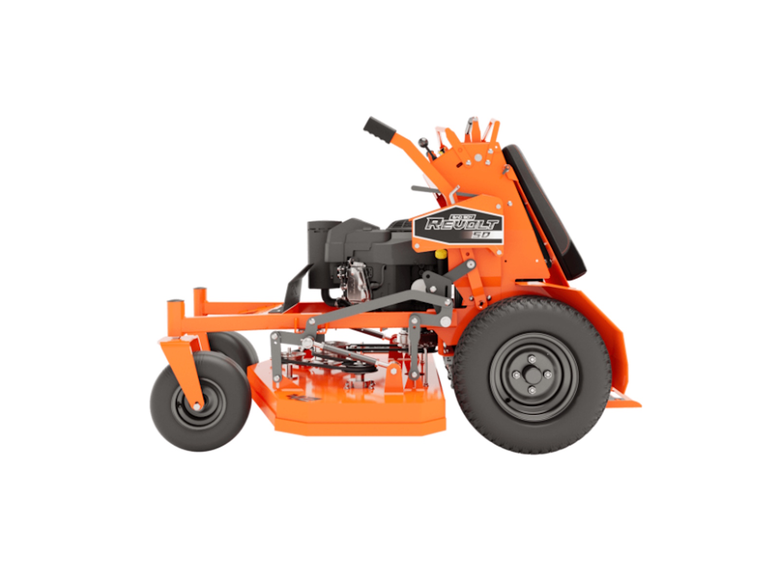 Everything about the Revolt SD is smooth, comfortable and easy to use. It starts with our patented, full suspension operator platform that gives you a smoother ride with less fatigue and maximum comfort. It's mounted on an inset I-Beam front rail and features 3/8˝ steel front forks and 3 1/2˝ trail for smooth directional changes.