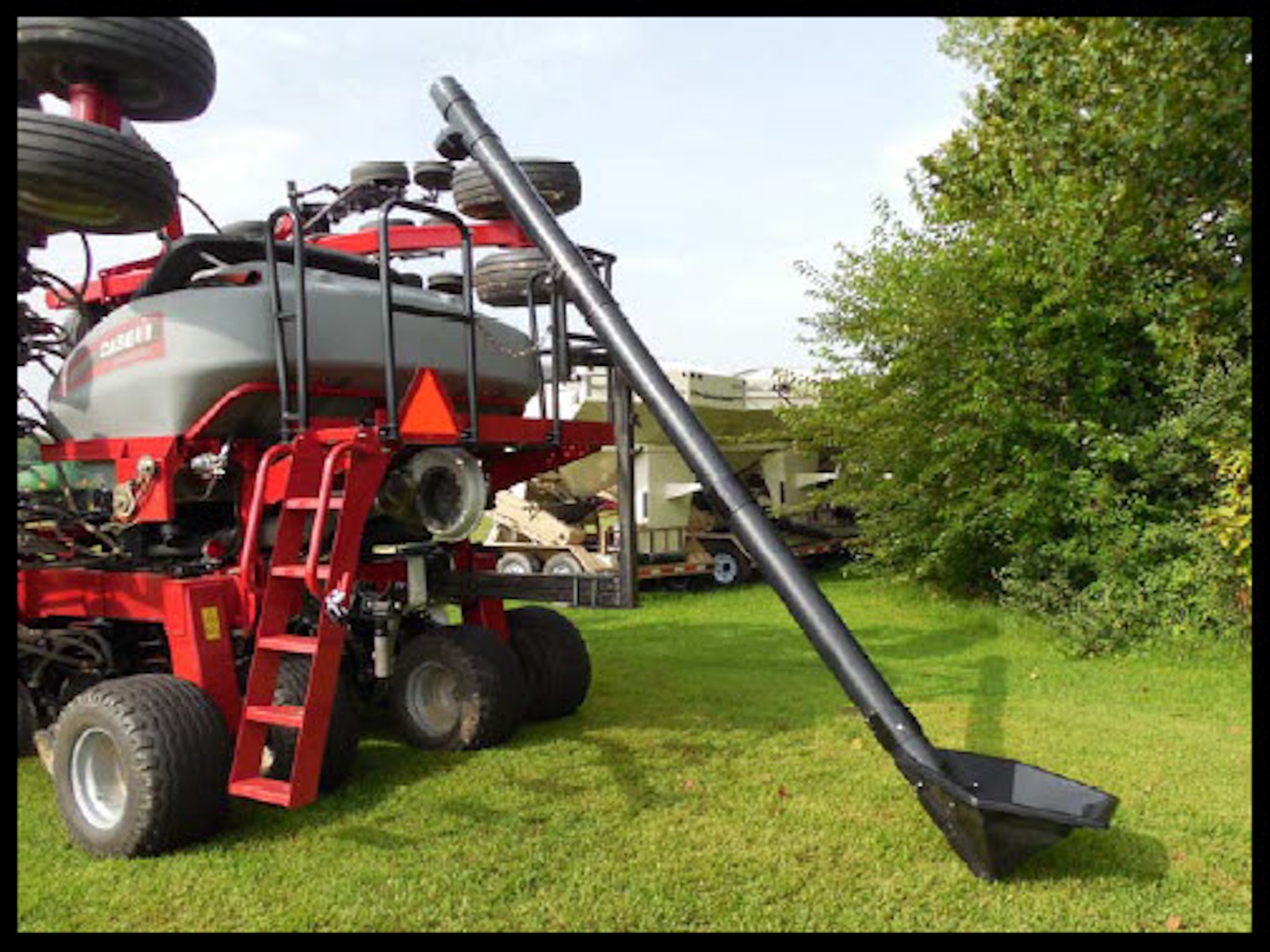 A flexible discharge hose at the top of the augers allows quick fill of the seed hoppers.
