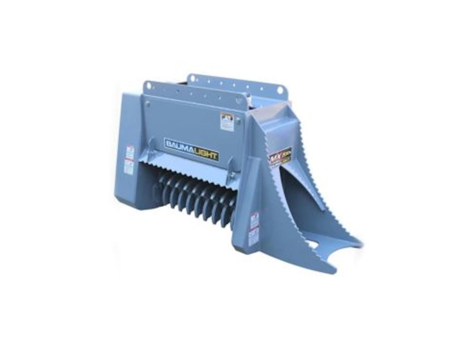 Same as our other 500 series the MX530R is a brush mulcher for excavators and designed to maintain and clear fence lines and entry level contractor work. The difference is the built-in to frame root rake to move logs and other debris out of the path of the excavator or field of work. Same as the other 500 series Baumalight brush mulchers the MX530R is offered with two different type of cutting teeth. The Planer style teeth feed their appetite for brush bit by bit, taking small bites and providing the most efficient mulching and cutting. The Ripper style teeth have more of a shredding mulching action. Their v-shaped design makes them less susceptible to impacts with hard objects like stones, making them the better choice when mulching below grade and in fence lines. See our brush cutting size chart to see what brush size this excavator mounted forestry mulcher can handle.