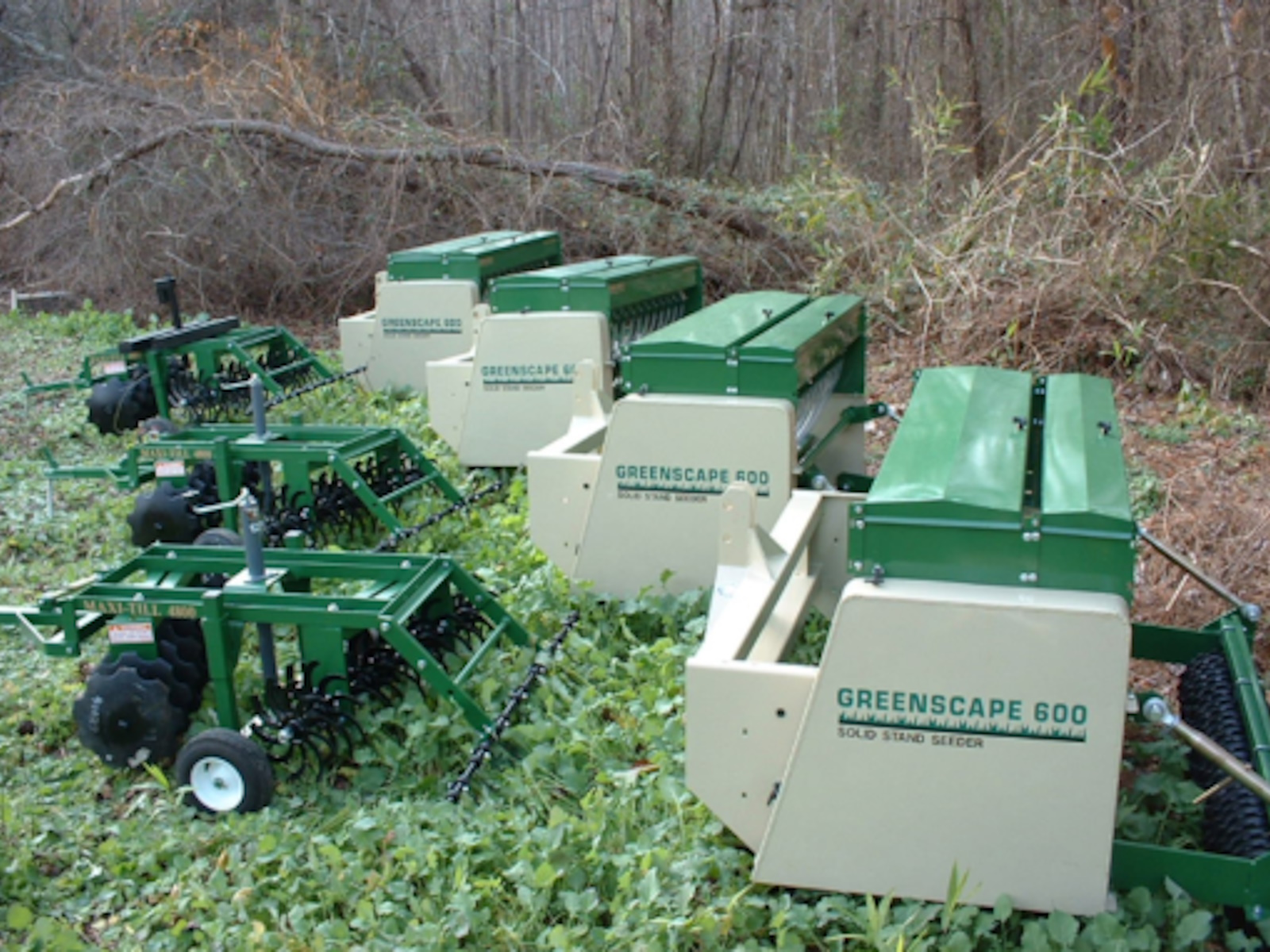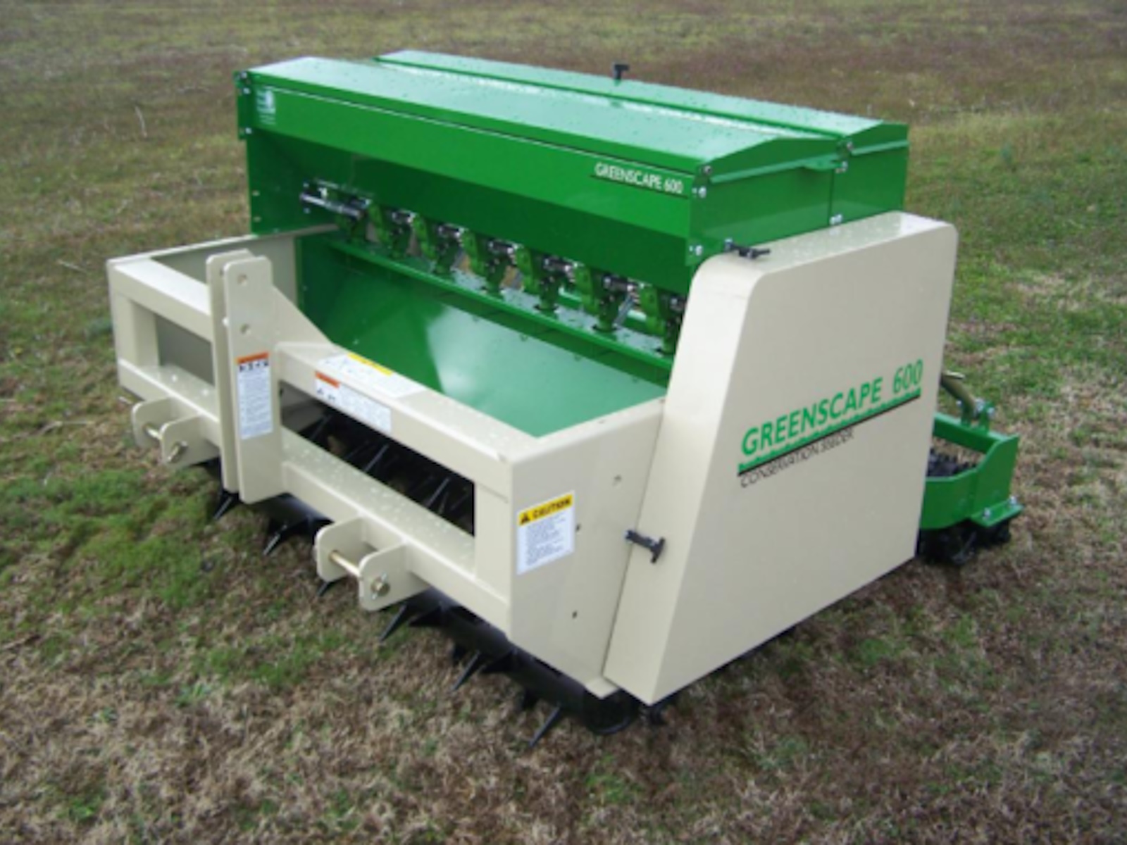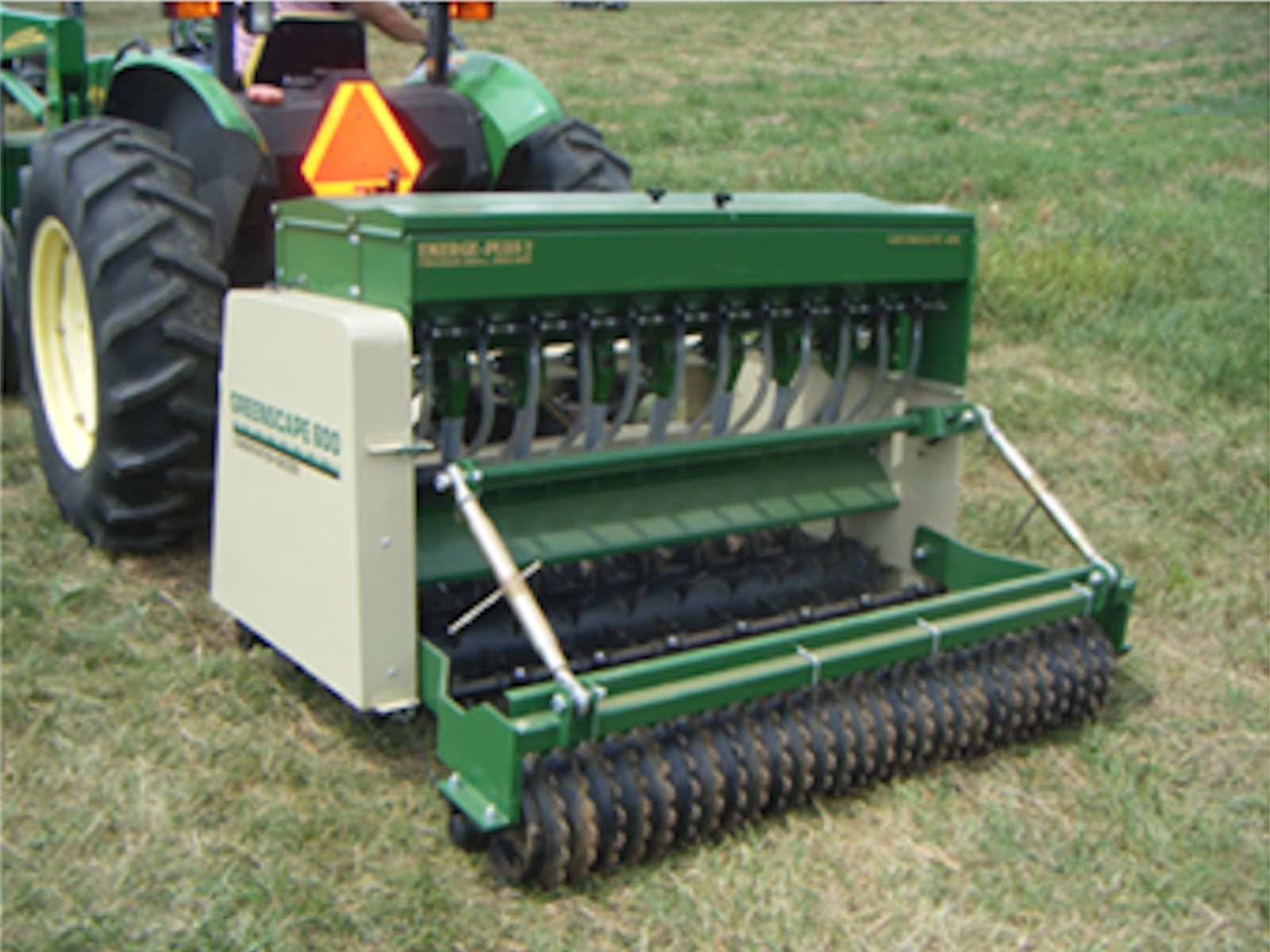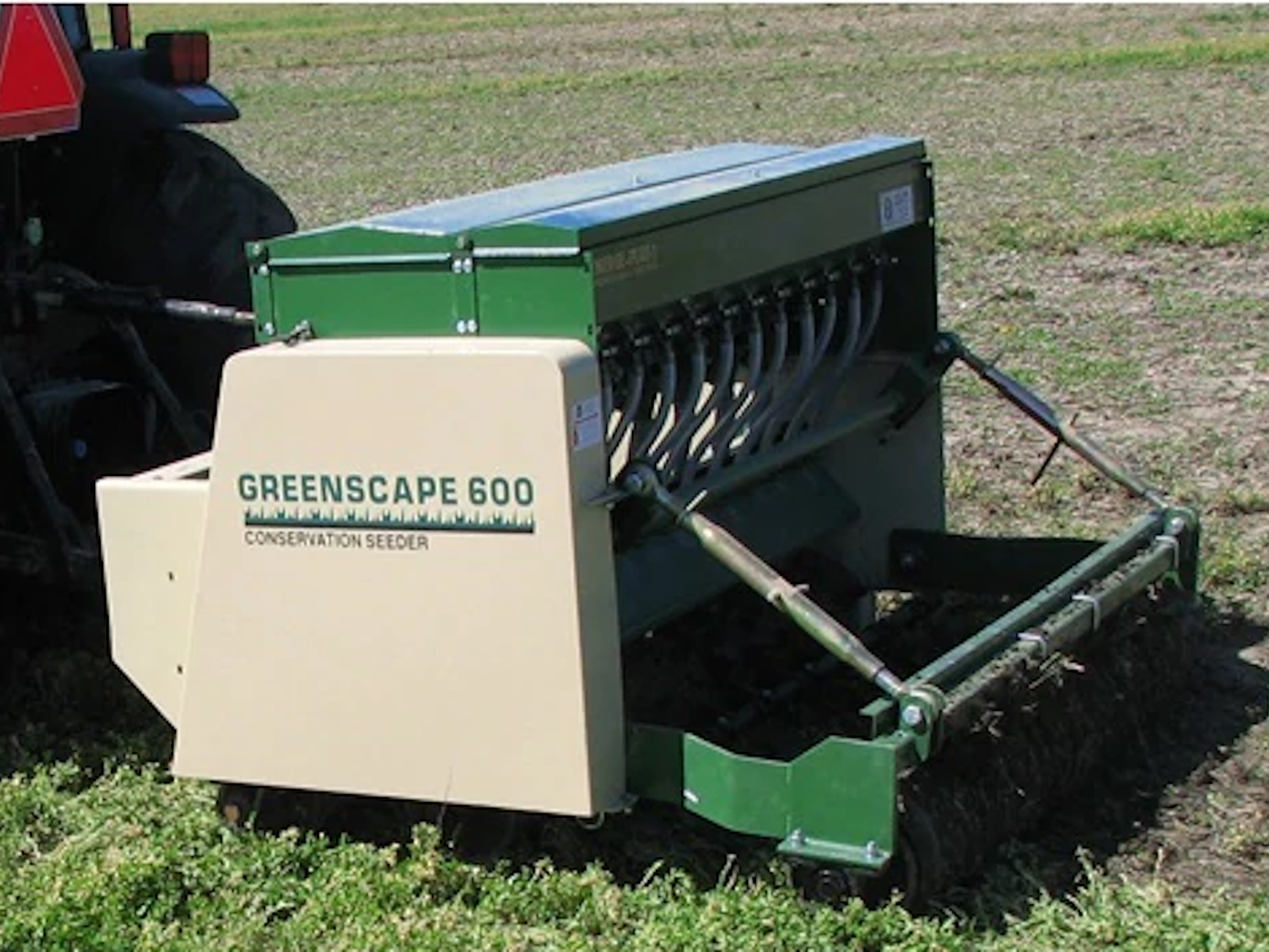 The Greenscape Conservation Seeder represents a totally new concept in seeding. Being neither a grain drill nor a PTO driven seeder, the Greenscape effectively prepares the soil, drops and lightly covers the seed, and firmly presses the soil for a perfectly prepared seedbed. It is designed to achieve a perfect pattern across the working width of the machine; no row effect as with drills or knife type overseeders. This machine will seed into all conditions, including primary seeding into prepared ground or overseeding into existing vegetation. Best of all, it’s all ground driven – no PTO shafts or gearboxes to maintain, and requires only a 30 horsepower tractor to operate. When equipped with the optional precision small seed boxes, the Greenscape will plant virtually any type or size seed at any rate that you desire. Available in 60″ & 84 “.