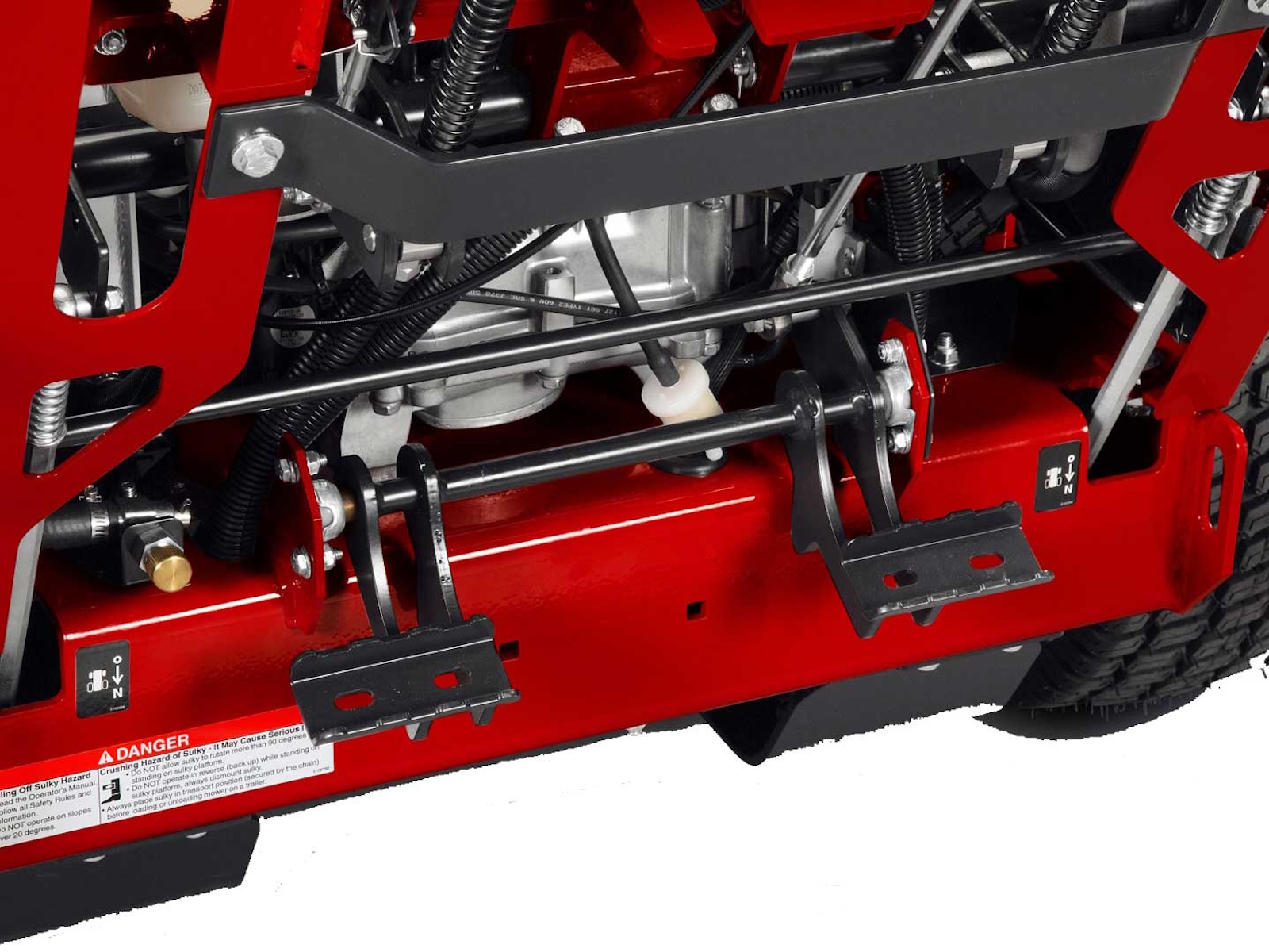 - Dual commercial grade transaxles with remote oil coolers that reduce oil temperature by as much as 25% and feature 1.125" tapered axle, forged steel bull gear and steel cut pinion gear for enhanced performance in commercial applications.