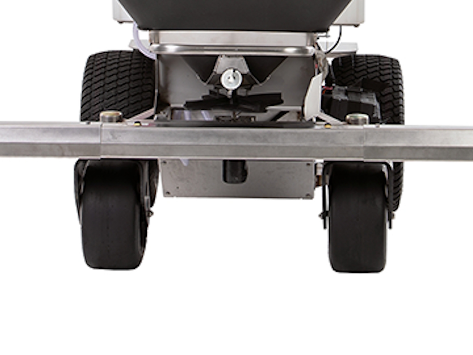 - Stainless steel resists corrosion from the granular and liquid chemicals distributed by the unit.