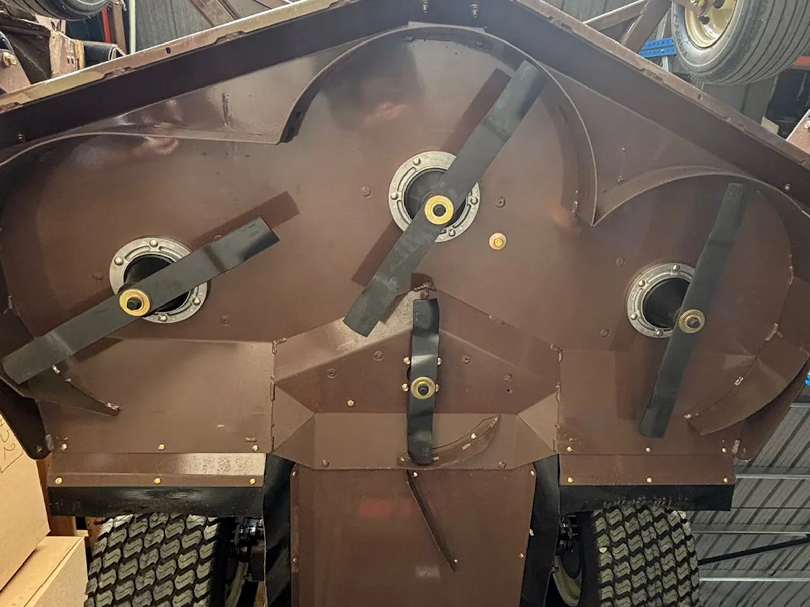 - Unique four-spindle design evenly distributes loads of clippings out the back of the mower and away from the operator and engine.