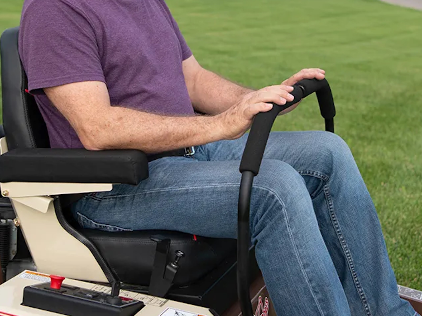 - Fully adjustable operator seat is iso-mounted to reduce vibrations, has padded lumbar support, and is covered in breathable Cordura® fabric that won't tear or crack.