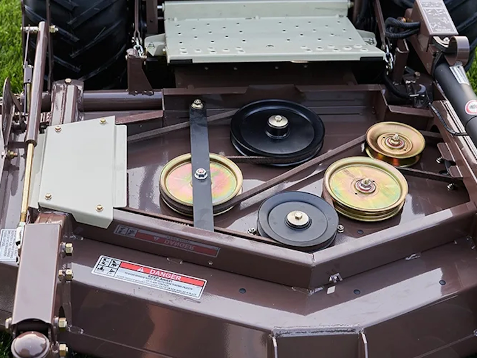 - 600 Series mowers have fewer than 10 grease points and allow for easy top-side access to belts and filters. Additionally, the belts are self-tensioning, helping to cut down on maintenance time by 95%.