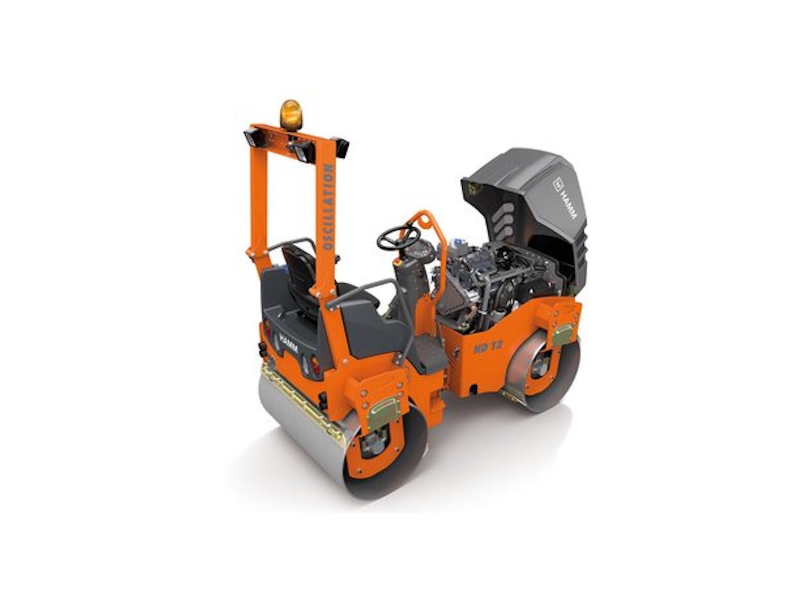 Tandem roller with vibration and oscillation drum.
