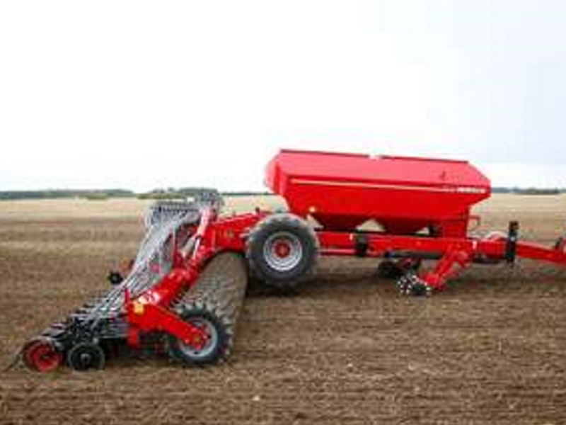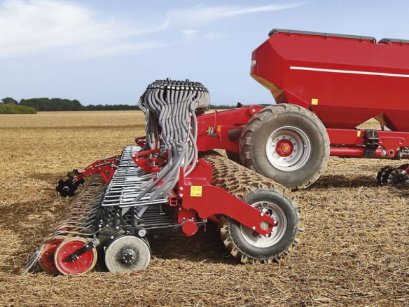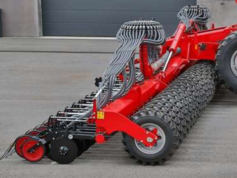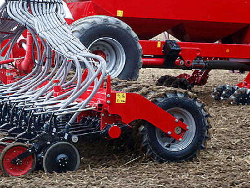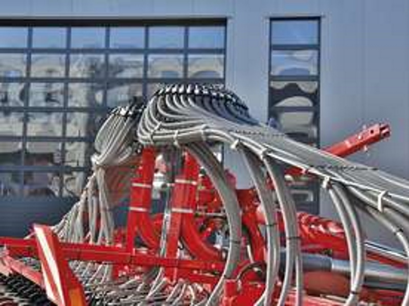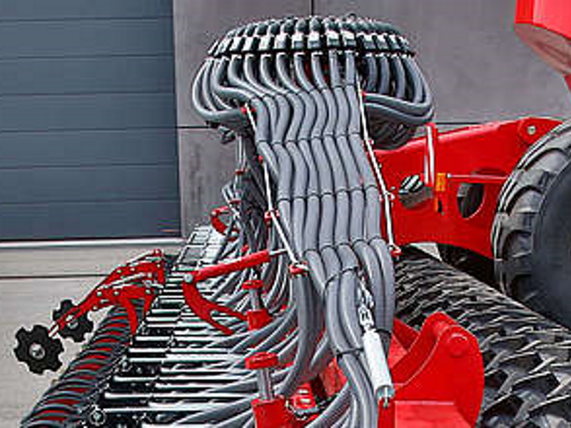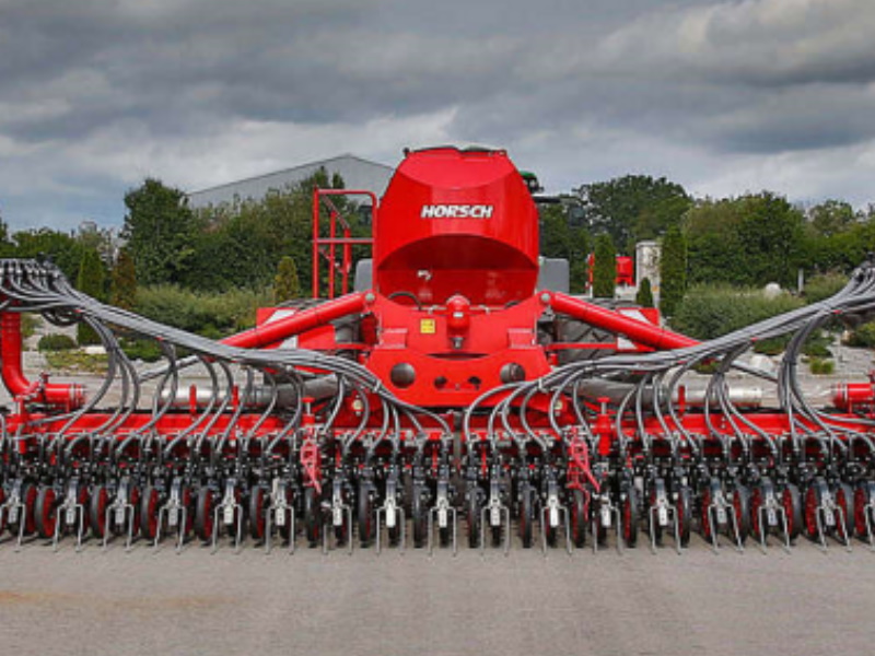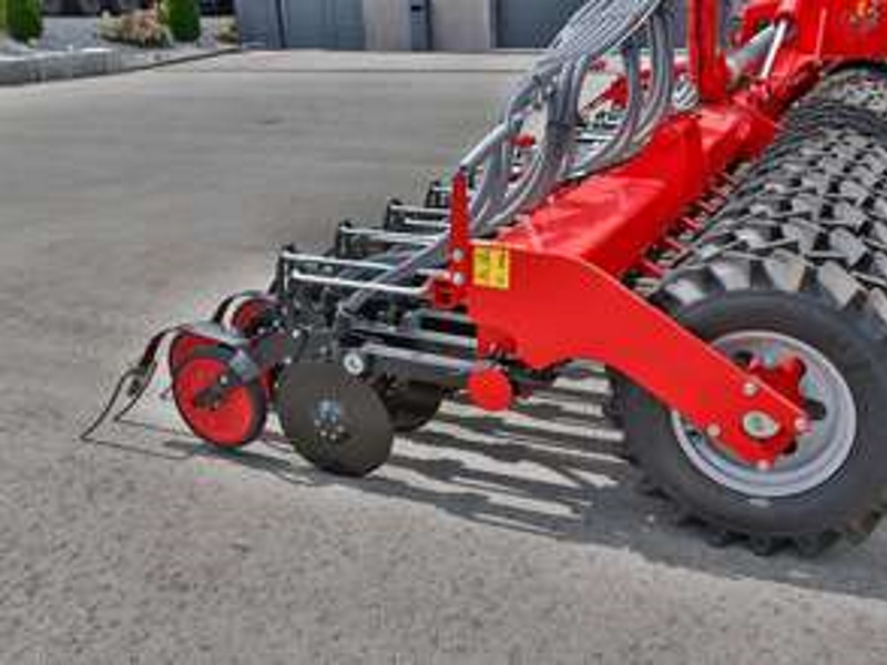 With the Serto SC HORSCH offers a compact seed drill in 10 and 12 m working width without front tools. Its central features are a sophisticated folding technology and an end-to-end tyre packer combined with a heavy double disc coulter. Similar to the well-proven Pronto system two seed coulters with a row spacing of 16.6 cm run behind every tyre. To guarantee a homogeneous depth placement, the Serto is equipped with a packer for levelling and for consolidation.The new HORSCH PowerDisc coulter is ideal for difficult conditions and, even if the seedbed is coarse, guarantees a safe seed placement due to coulter pressures of up to 150 kg per individual row. Due to very large bearings and its design the coulters are extremely solid and long-lasting. We integrated the experiences from the Maestro single grain seed drill in the development. The hopper capacity of the Serto amounts to a total of 6 000 liter, partition ratio 60 : 40. Thus, either 6 000 liter of seed can be applied or a combination of seed and fertiliser with a hopper partition of 3 600 liter in the front and 2 400 liter in the rear hopper. A 300 liter hopper for a micro-granular compound as a third component is available as an option. For an efficient loosening of the tractor tracks track eradicator tines or wavy-disc track eradicators are available. The wavy discs that are arranged in pairs are ideal especially on heavy soils, as no rough clods are broken from the seedbed and the tolerance for harvest residues is particularly high. At the push of a button the machine folds to a transport width of 3 m.