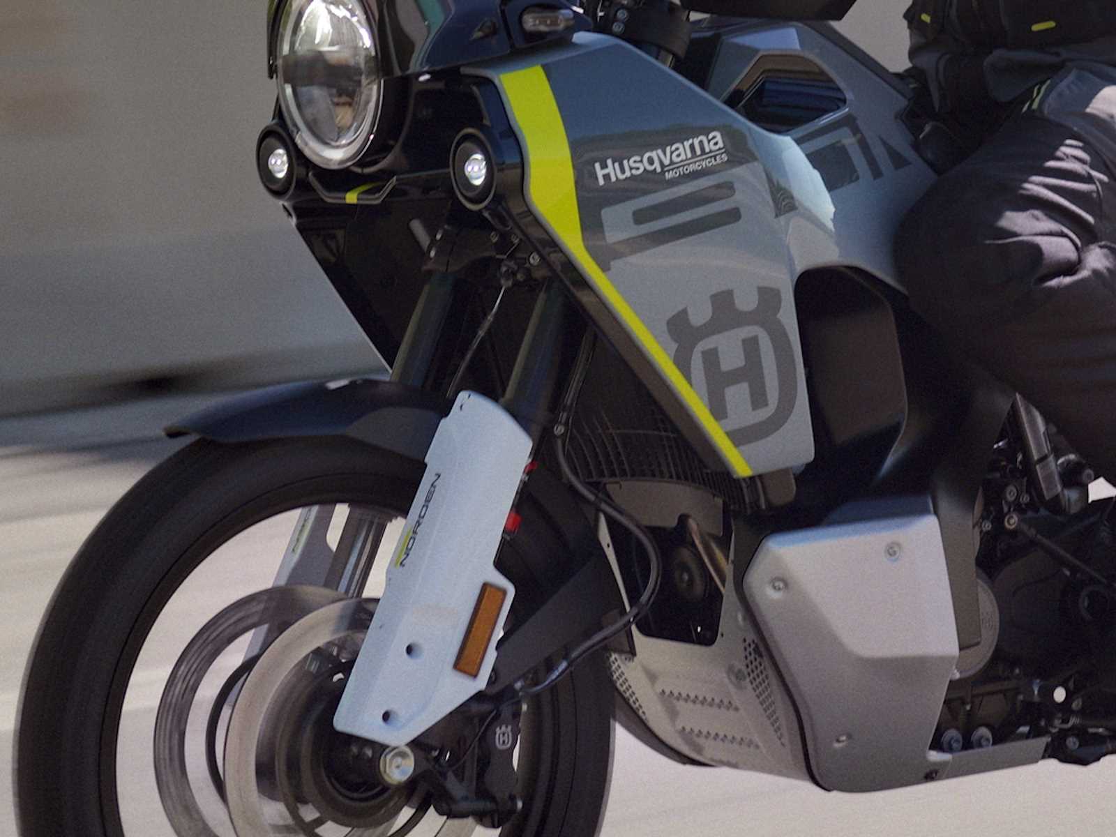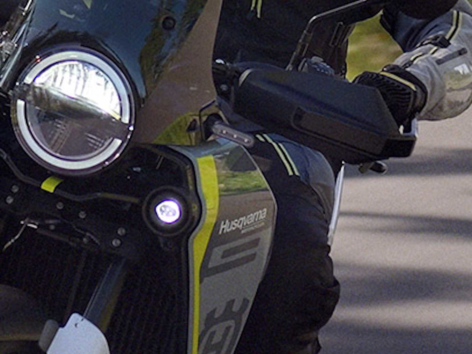Day. Night. Mist or fog. LED lights and fog lights illuminate the way on the Norden 901. Inspired by the lights used on Husqvarna Factory Racing's rally machines, the front cowl features an integrated LED headlight and standard fog lights, which are neatly designed with a slim profile for enhanced aerodynamics that assure stability at higher speeds. A daytime running light encircles the headlight ensuring the Norden 901 is clearly visible at all times. LED indicators deliver clear signals to other road users when navigating through urban environments.