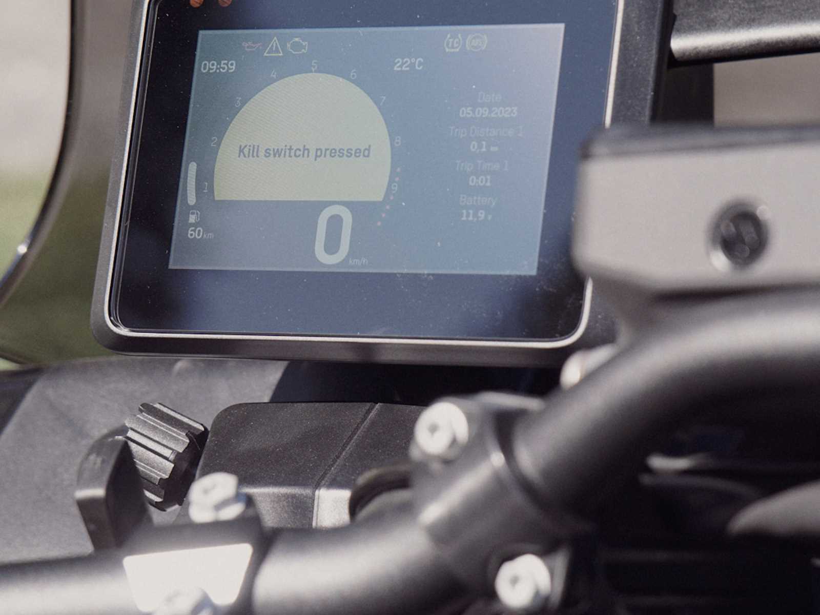 You want rider aids that assist rather than restrict, ensuring you always remain in control. Cornering Motorcycle Traction Control (MTC) is lean angle sensitive and offers seamless interventions. When the system detects that the rear wheel is turning at the wrong speed for the riding situation, throttle input is reduced until the correct level of rear wheel slippage for the selected ride mode and current angle of lean is reached. In optional 'Explorer' mode, you can control the level of MTC intervention with 9 levels of slip adjust. When front wheel lift is detected, the system reduces the throttle by small increments for a more constant acceleration. As your ambition and experience grow you can, if desired, switch off the traction control to drift the rear and lift the front wheel at will.