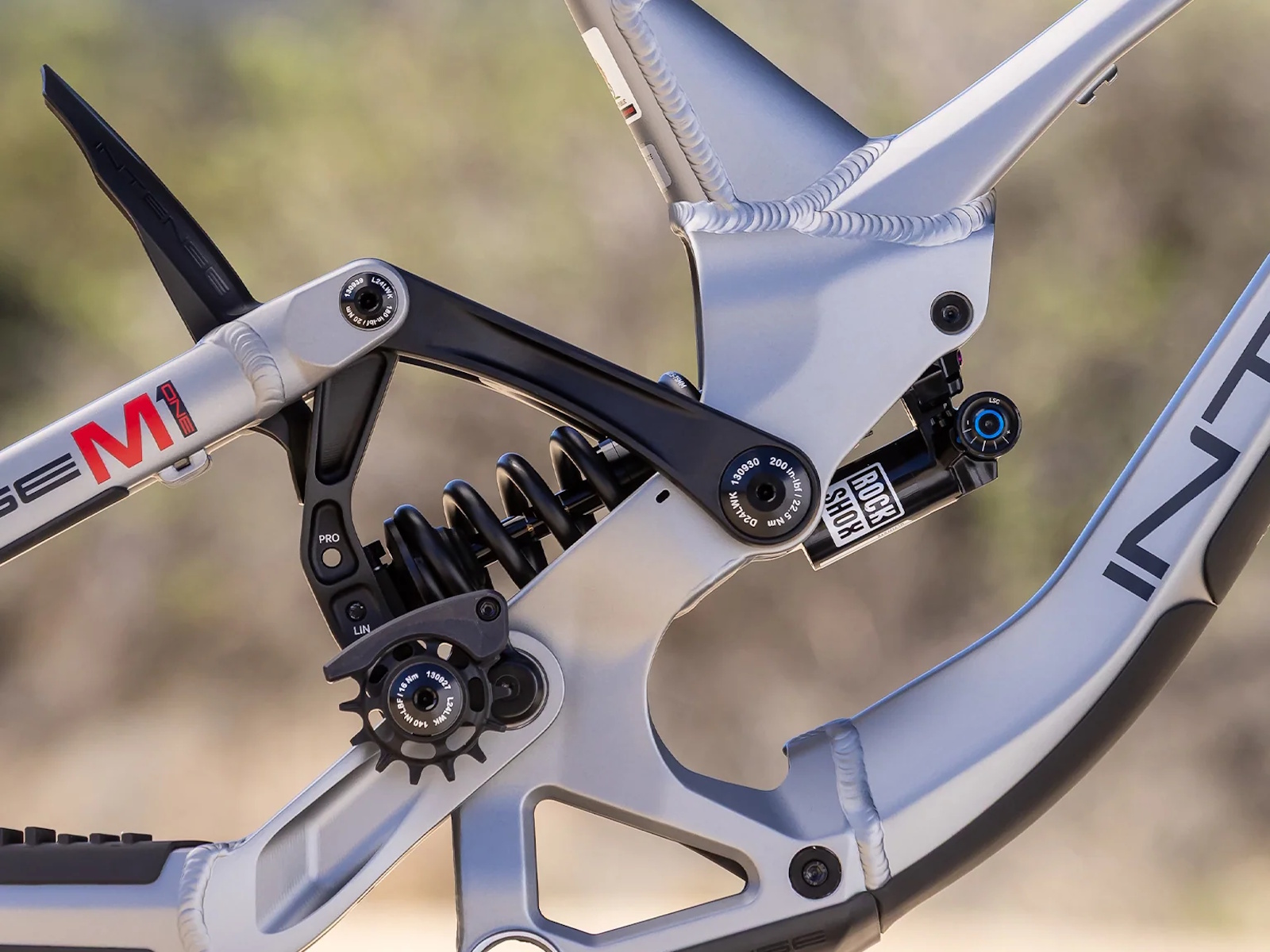 - The M1’s 6-Link suspension design offers two shock mount positions, allowing you to choose between Linear and Progressive settings without changing your geometry. The Linear position provides 203mm of travel with a 27% progression rate, while the Progressive setting delivers 212mm of travel with a 31% progression rate.