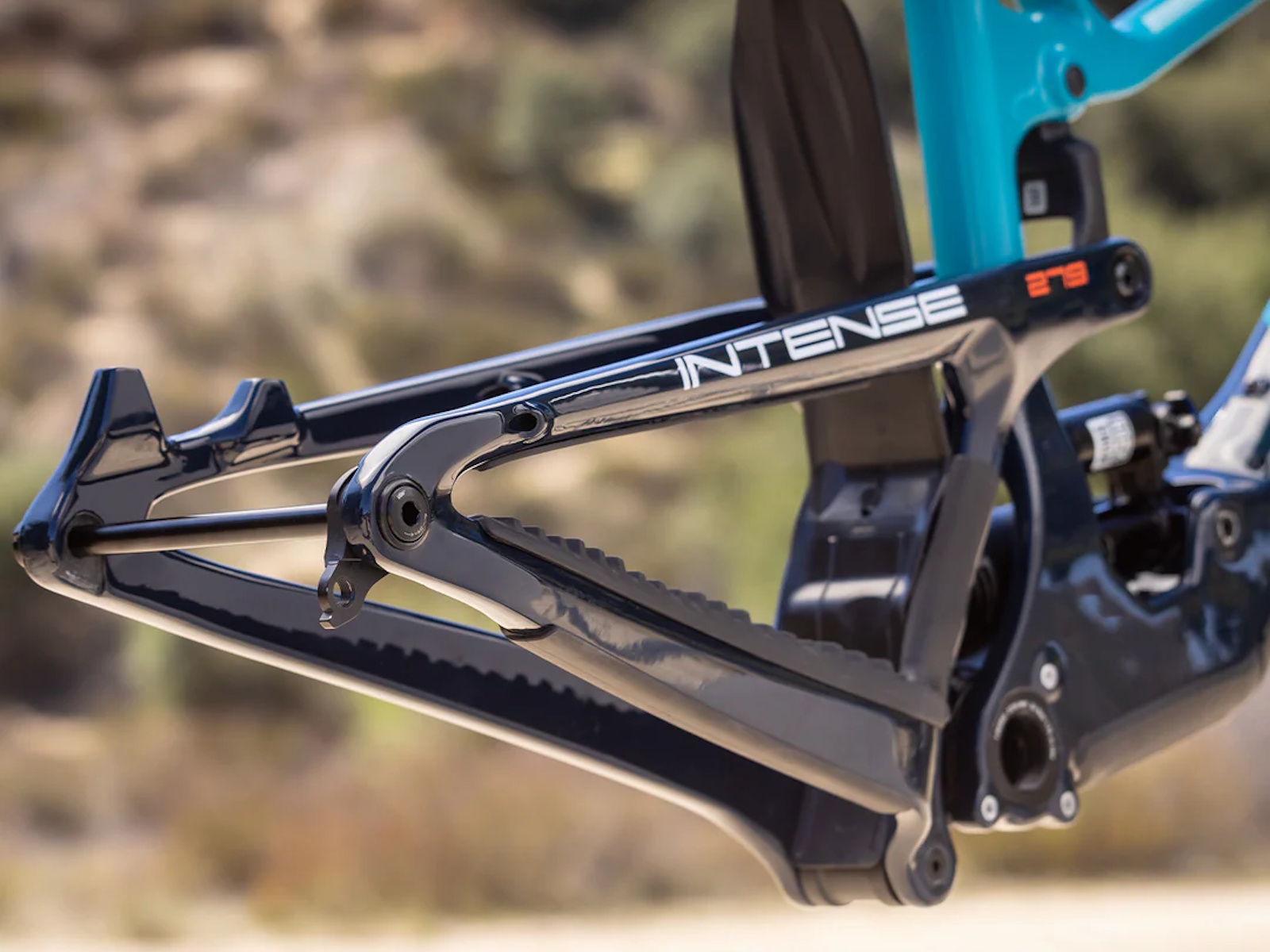 - The bottom-link-driven rear shock provides a firm pedaling platform and lowers the center of gravity, offering exceptional stability and control on descents.
