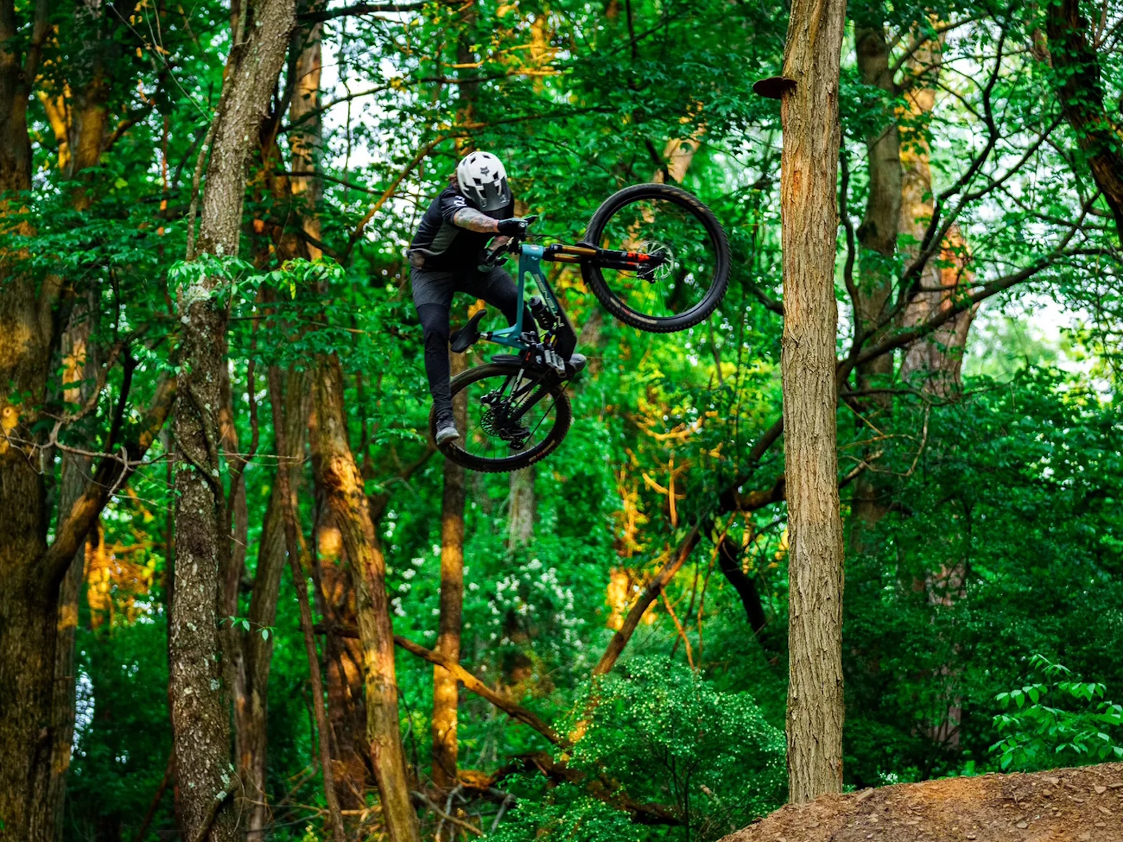 - The bottom-link-driven rear shock provides a firm pedaling platform and lowers the center of gravity, offering exceptional stability and control on descents.