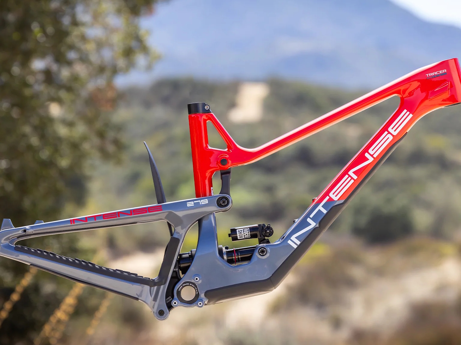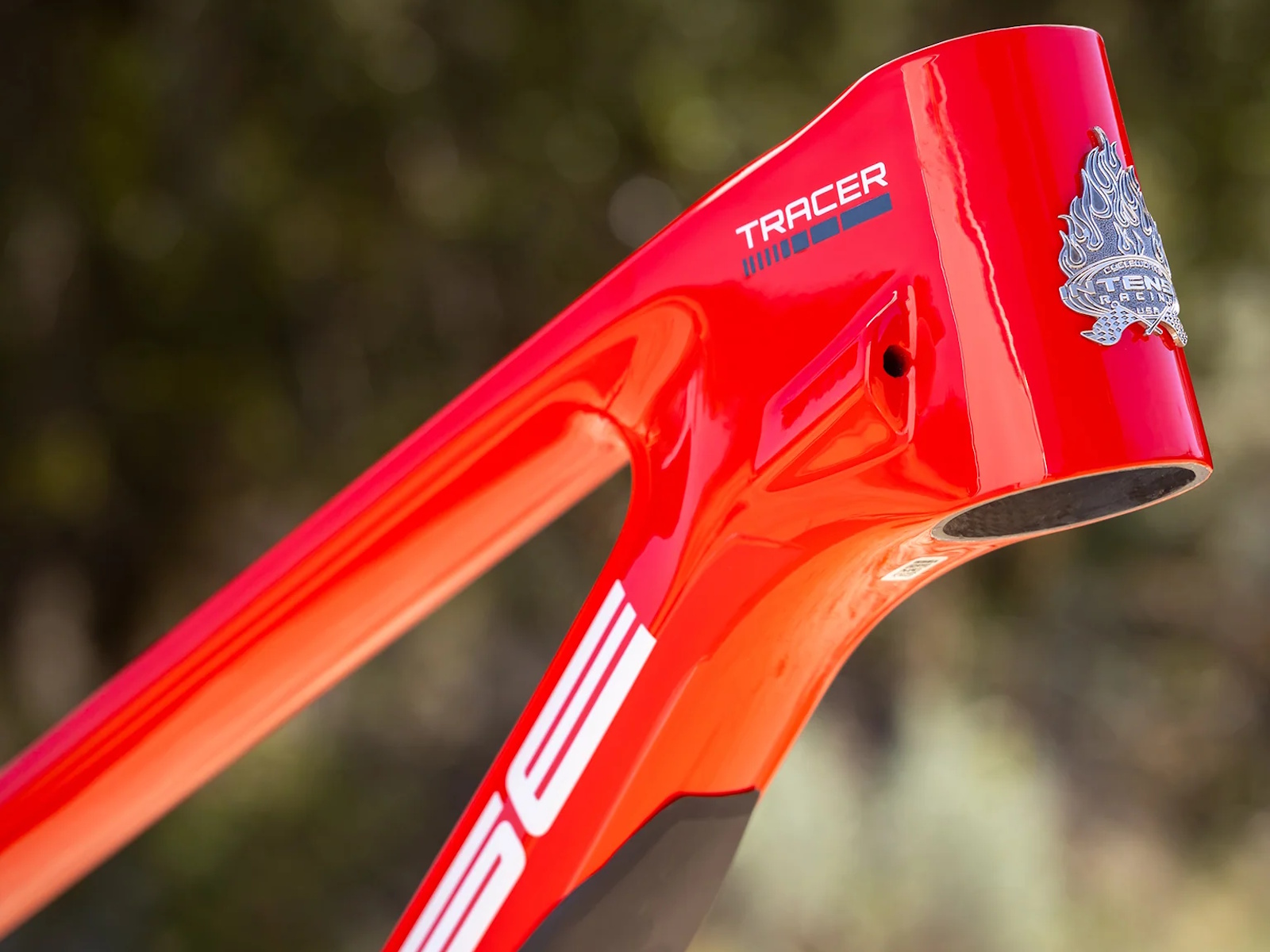 - The Tracer’s downtube features molded frame protection and a shuttle guard, providing robust defense against impacts and wear.